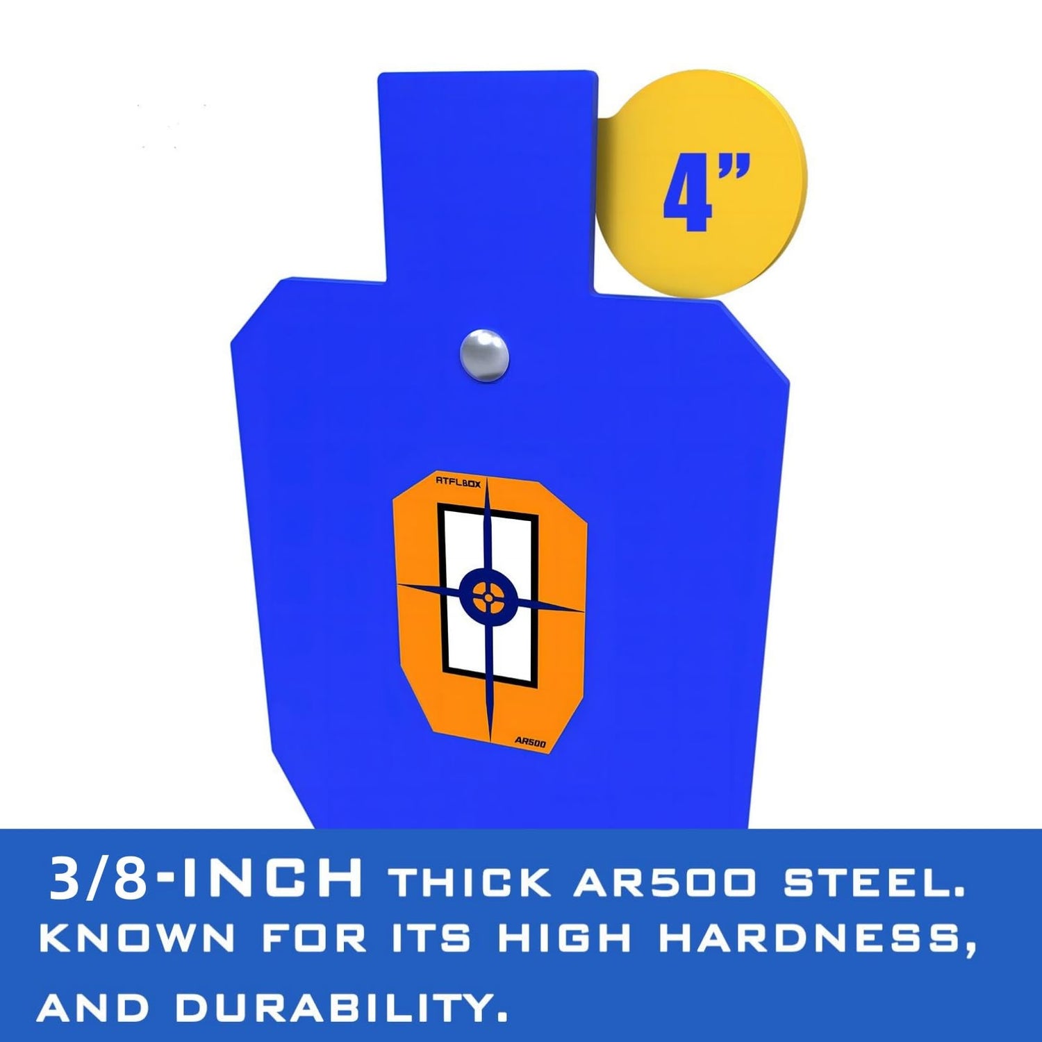 ATFLBOX AR500 3/8 inch Thick Steel Target Stand System, 12'' x 20" Hostage Reactive Shooting Target with 2x4 Target Stand Kit (Blue)