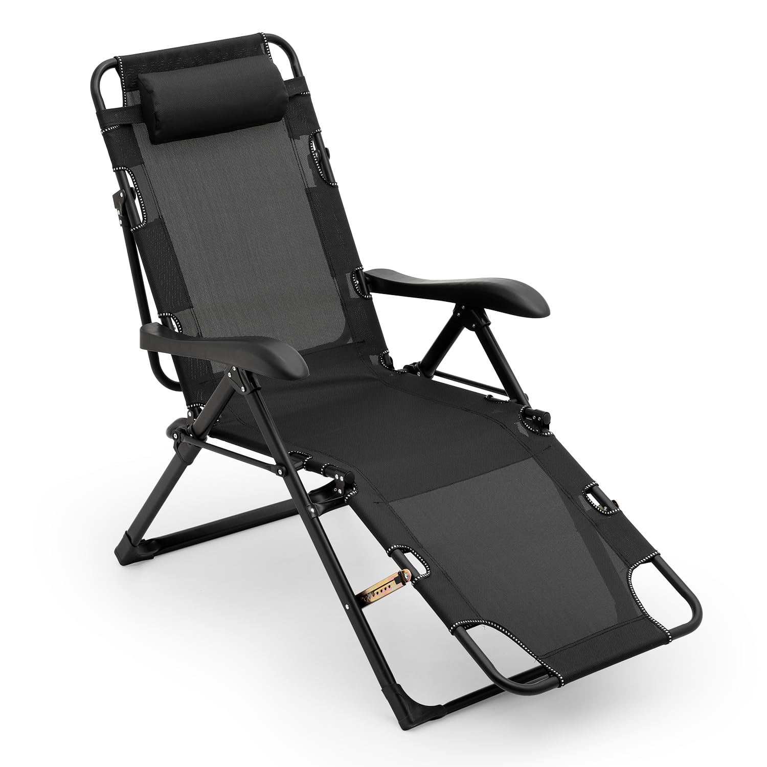 - Adjustable Headrest: Incorporating a 4-position adjustable headrest with memory foam padding that reduces neck strain. The ergonomic design supports of this beach lounge chair proper spinal alignment whether sitting upright or reclining, while the quick-release mechanism allows easy removal for cleaning.