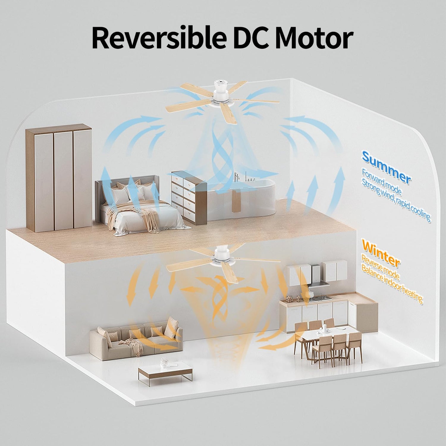 - Ultra-Quiet 35W DC Motor: Delivers high CFM airflow below 30dB for whisper-quiet performance. Energy-efficient with forward (summer cooling) and reverse (winter warmth) modes. Durable and long-lasting, it ensures year-round comfort without the noise