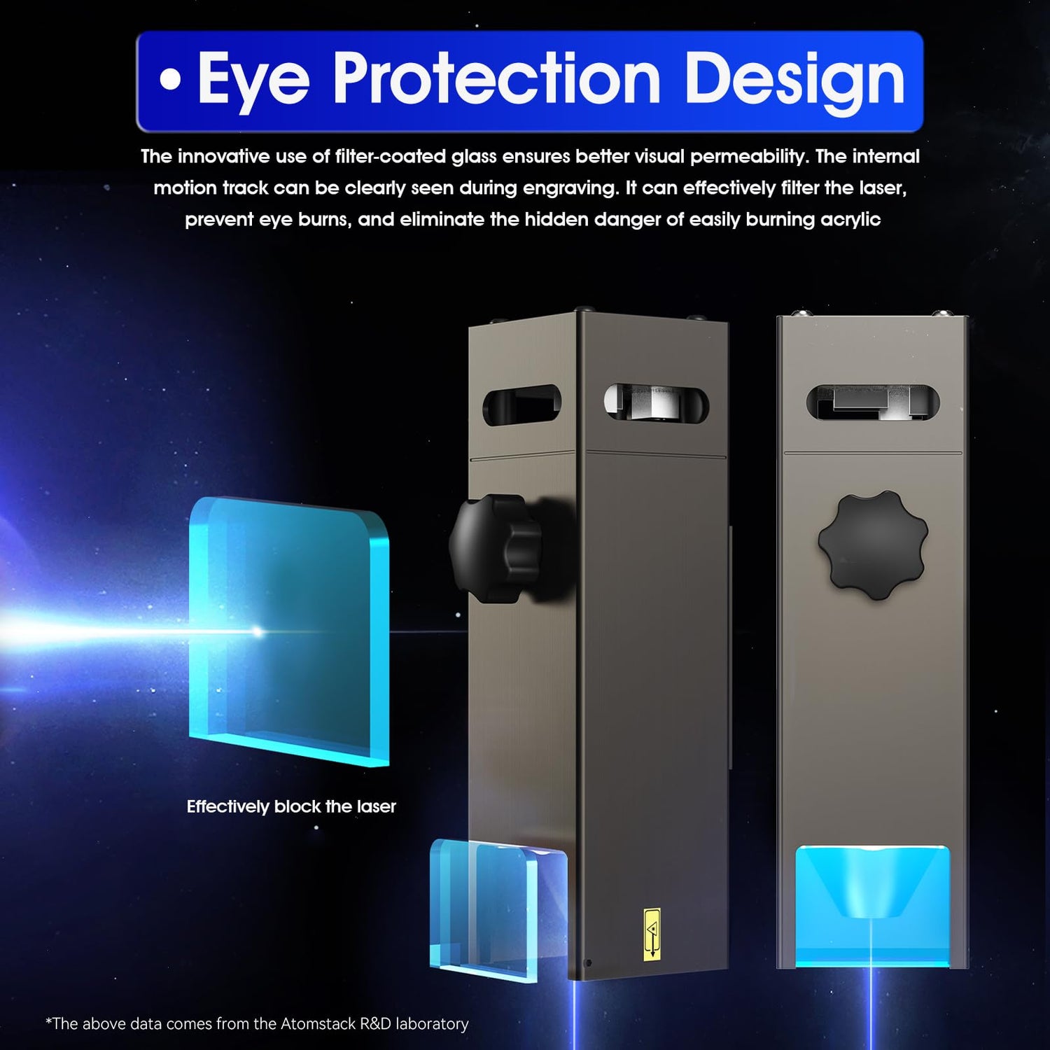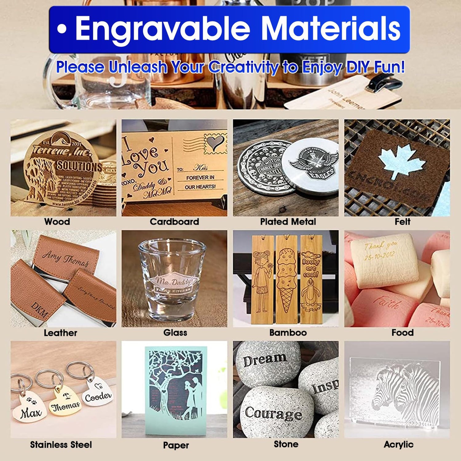 - ▶【High-Performance Fixed-Focus Laser】No need to be adjusted the focus before engraving. The focal spot area of the new laser is only 1/3 of the spot area of other ordinary lasers. Automatic fixed focus laser combines precision engraving and high energy cutting at the same time. Besides, focusing is also very simple. It has a knob that allows you to quickly adjust the distance between the engraved object and the laser head, completely eliminating the need to manually focus with a screwdriver.