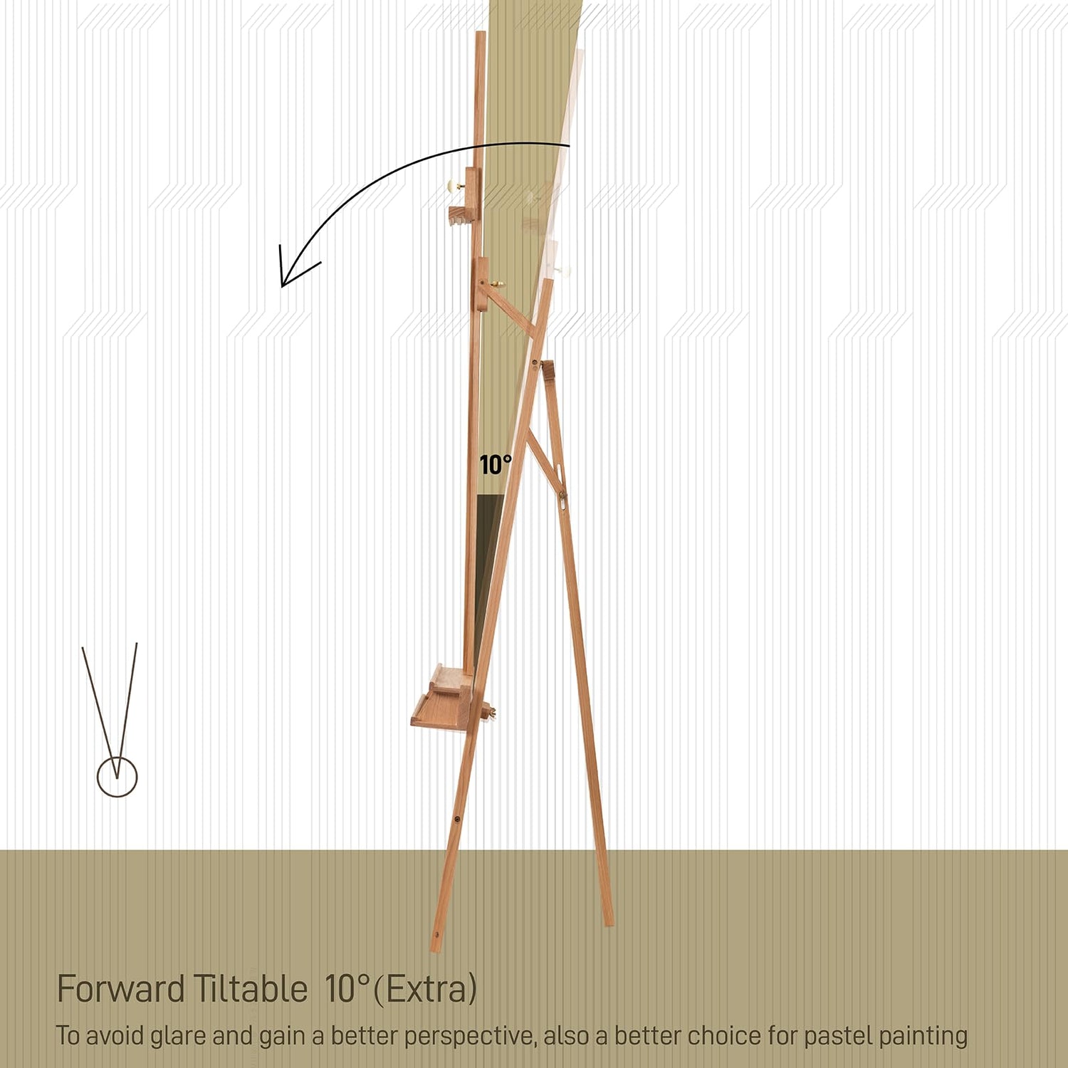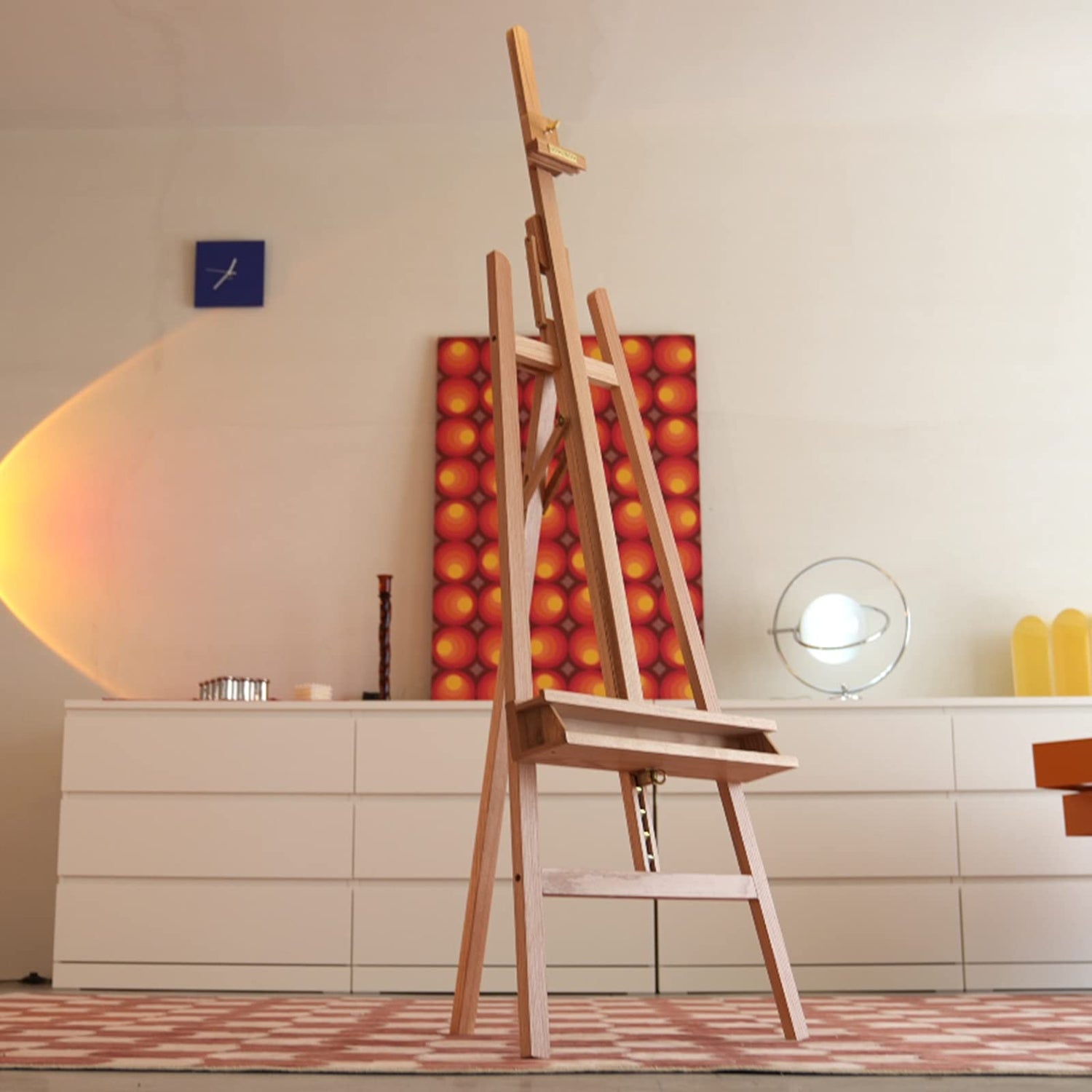 - 🖌️【ADJUSTABLE A-FRAME EASEL】 The oak wooden art easel stand for painting height can be easily adjusted from 63"-89"to fit your position. The easel board can hold different size canvases, up to 48" in height. The oak wooden art easel stand central mast can be tilted forward up to extra 10 degrees for pastel work, which can avoid lights from other angles, providing a clearer perspective. Reduce the impact of glare on your visual perception.