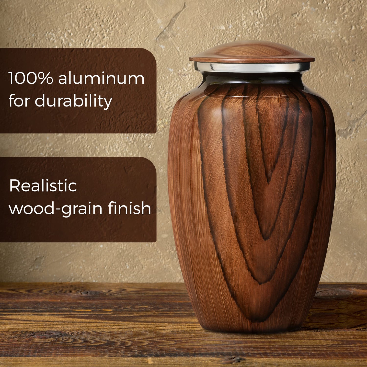 Aubree Woodgrain Aluminum Urns for Adult Male. Cremation urns for Human Ashes Adult Female. Decorative Wood urns for Human Ashes by Restaall