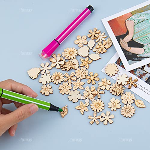 AUEAR, 300 Pack Mixed Wooden Flower Leaf Pattern Handmade Wodden Crafts Home Wedding School DIY Craft Dercoration