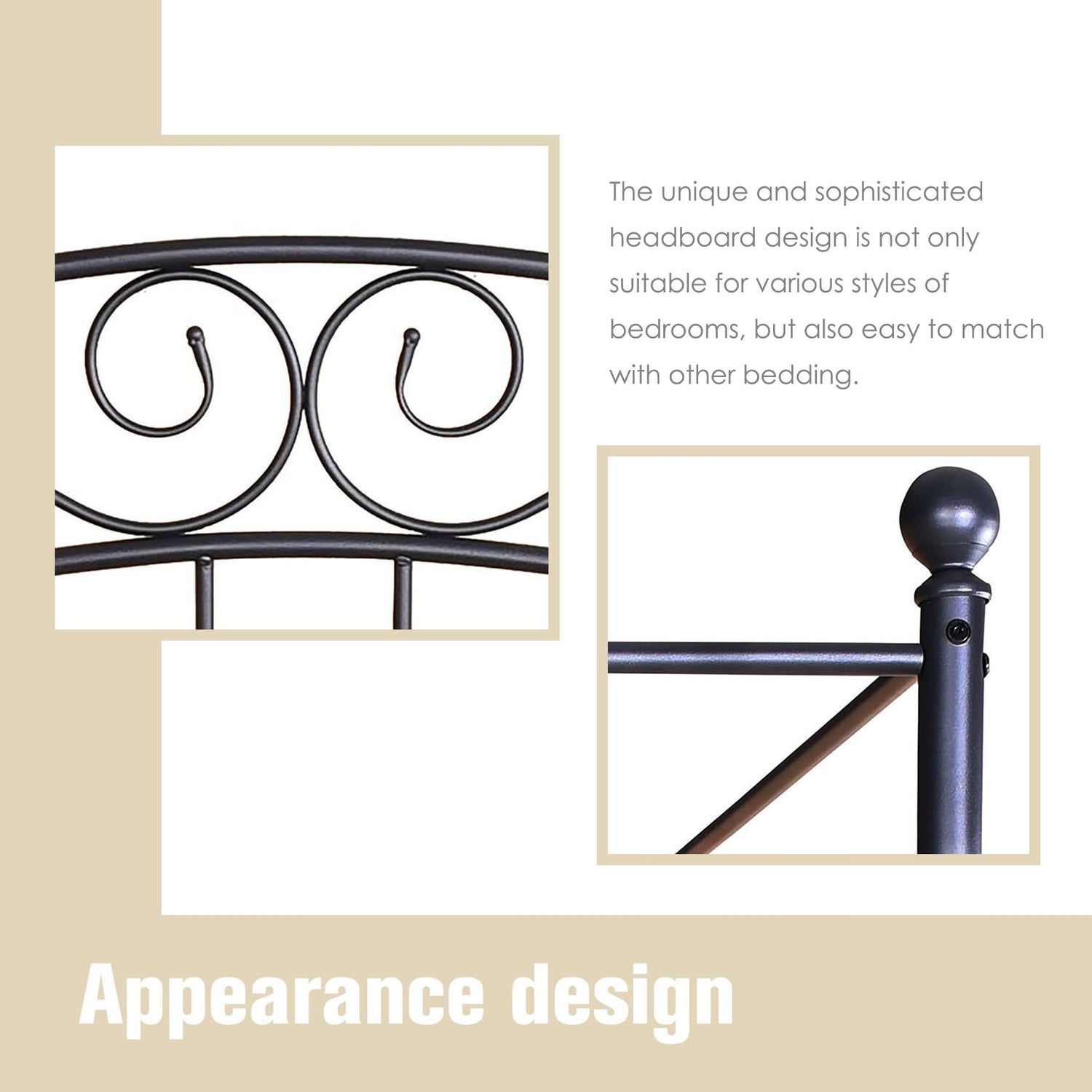 - 【No Box Spring Need】Heavy-duty steel slats, strong metal center rail and leg offer this metal framed strong support. Do not require additional foundation or box spring. Metal slat base allows air to pass freely beneath your bed, keeping your mattress fresher longer.