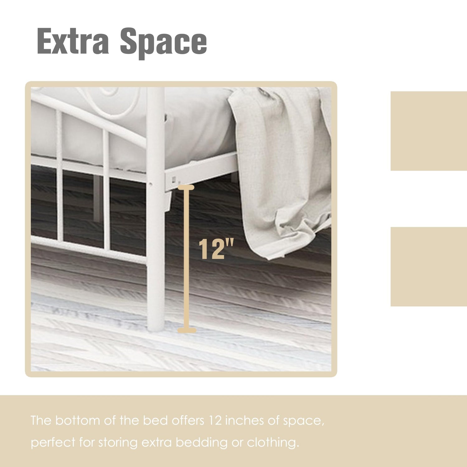 - 【No Box Spring Need】Heavy-duty steel slats, strong metal center rail and leg offer this metal framed strong support. Do not require additional foundation or box spring. Metal slat base allows air to pass freely beneath your bed, keeping your mattress fresher longer.
