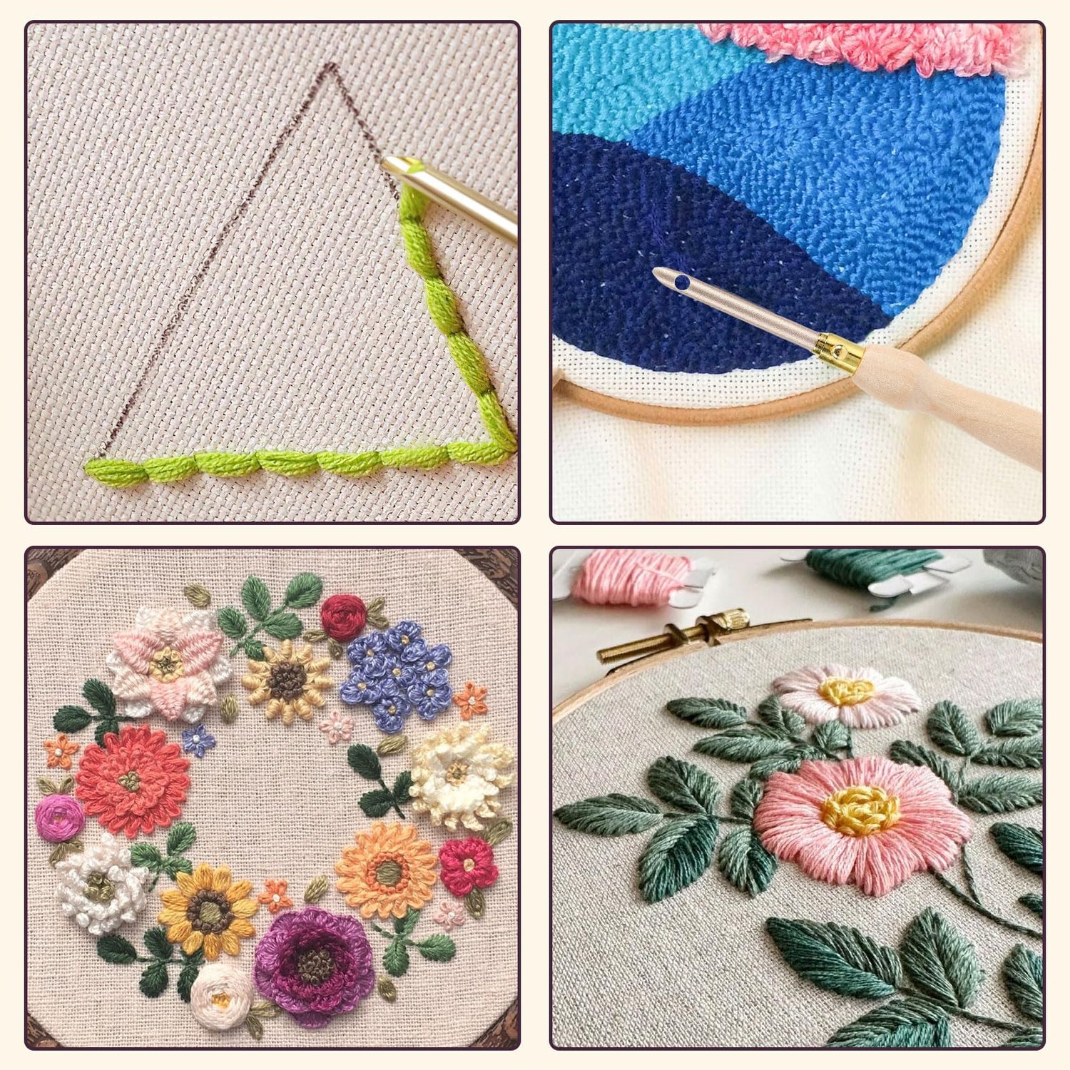 - Embroidery Punch Needle Kit: Package includes a wooden handle punch needles, an 8* size poke needle, a 2* needle threaders, a stainless steel pipe handle and a thread cutting scissors. Sufficient quantity and rich styles to meet your DIY art and engineering sewing needs