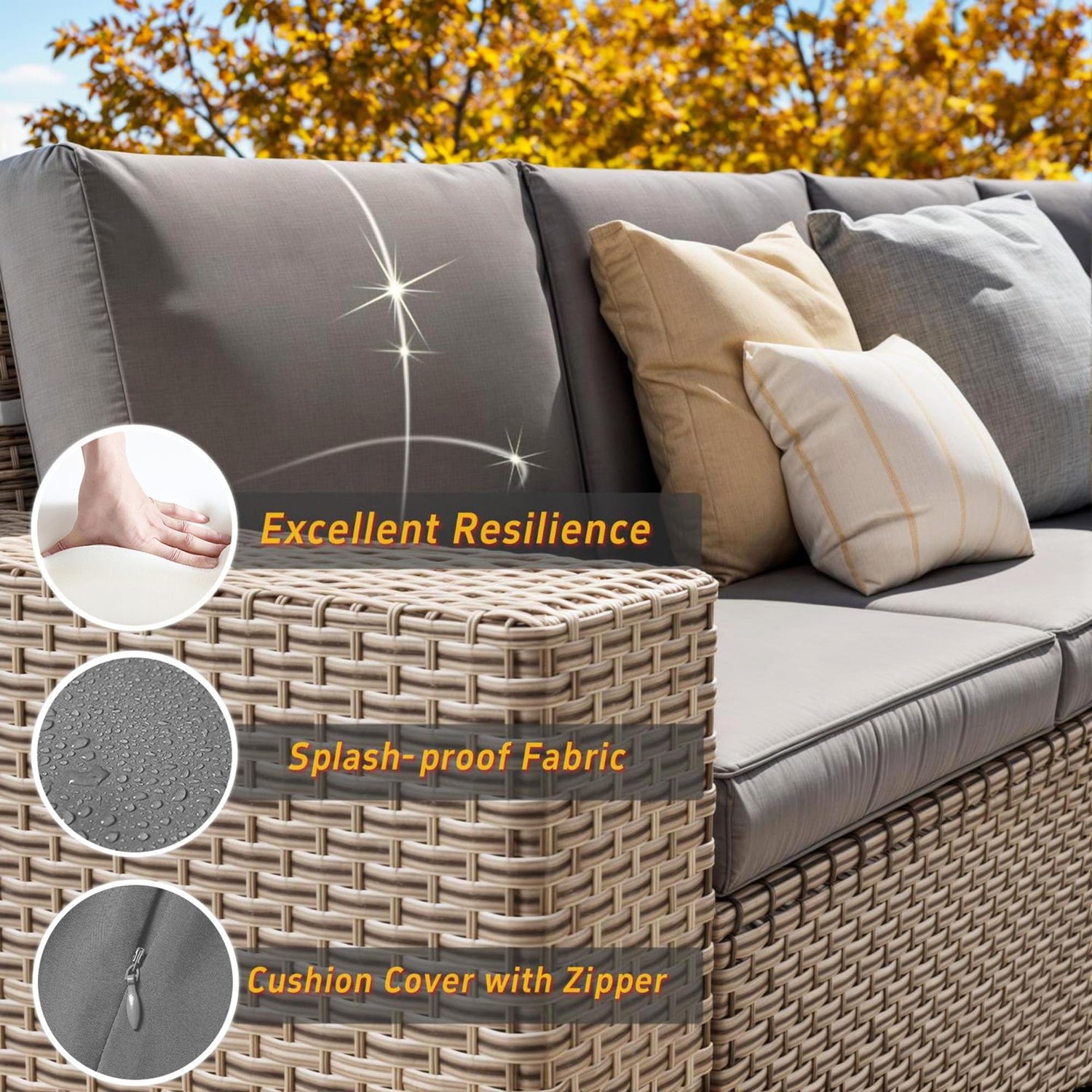 - Enhanced Comfort: Patio furniture comes with 4-inch seat cushions and high-resiliency back pillows. Removable, washable cushion covers ensure easy to maintain. High-back is designed to perfectly support your spine for superior outdoor lounging