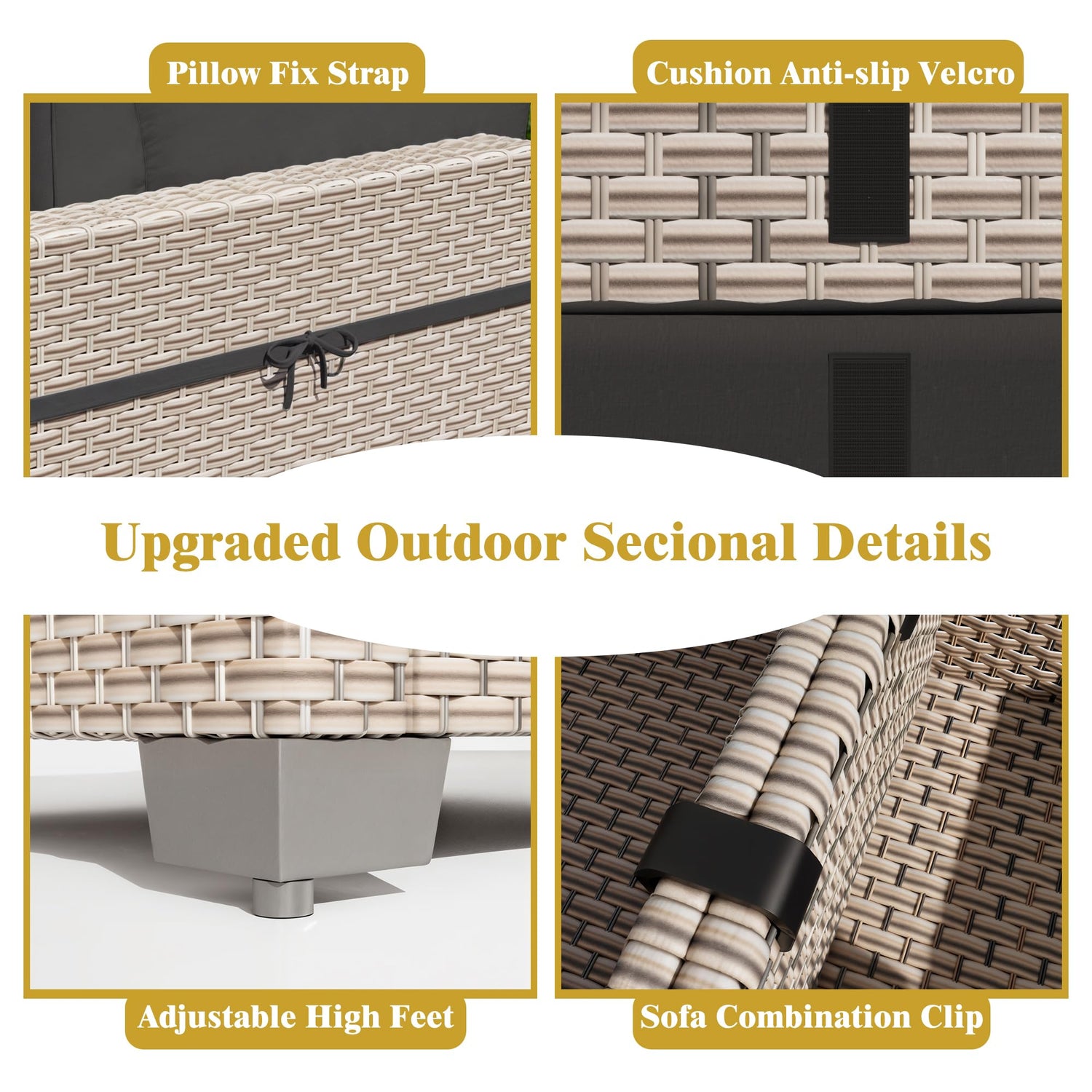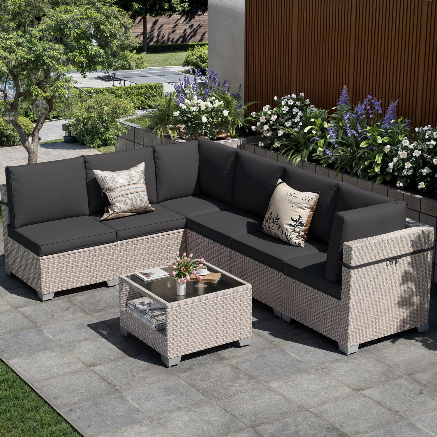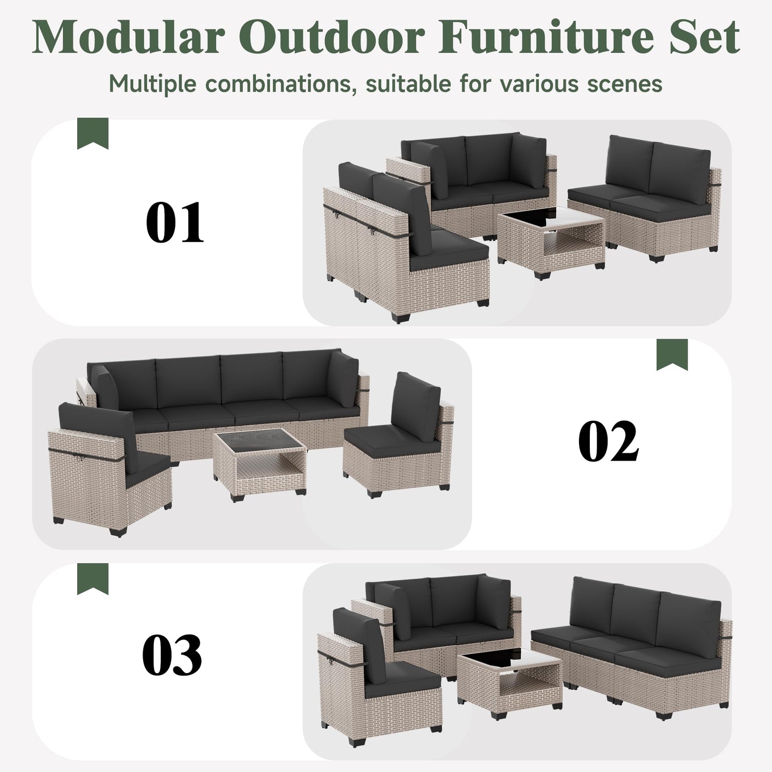 Aukreolis 7 Pieces Patio Furniture Set, Outdoor Sectional Wicker Sofa with Thick Cushions and Storage Coffee Table, Rattan Patio Conversation Sets for Deck Yard Poolside, Black