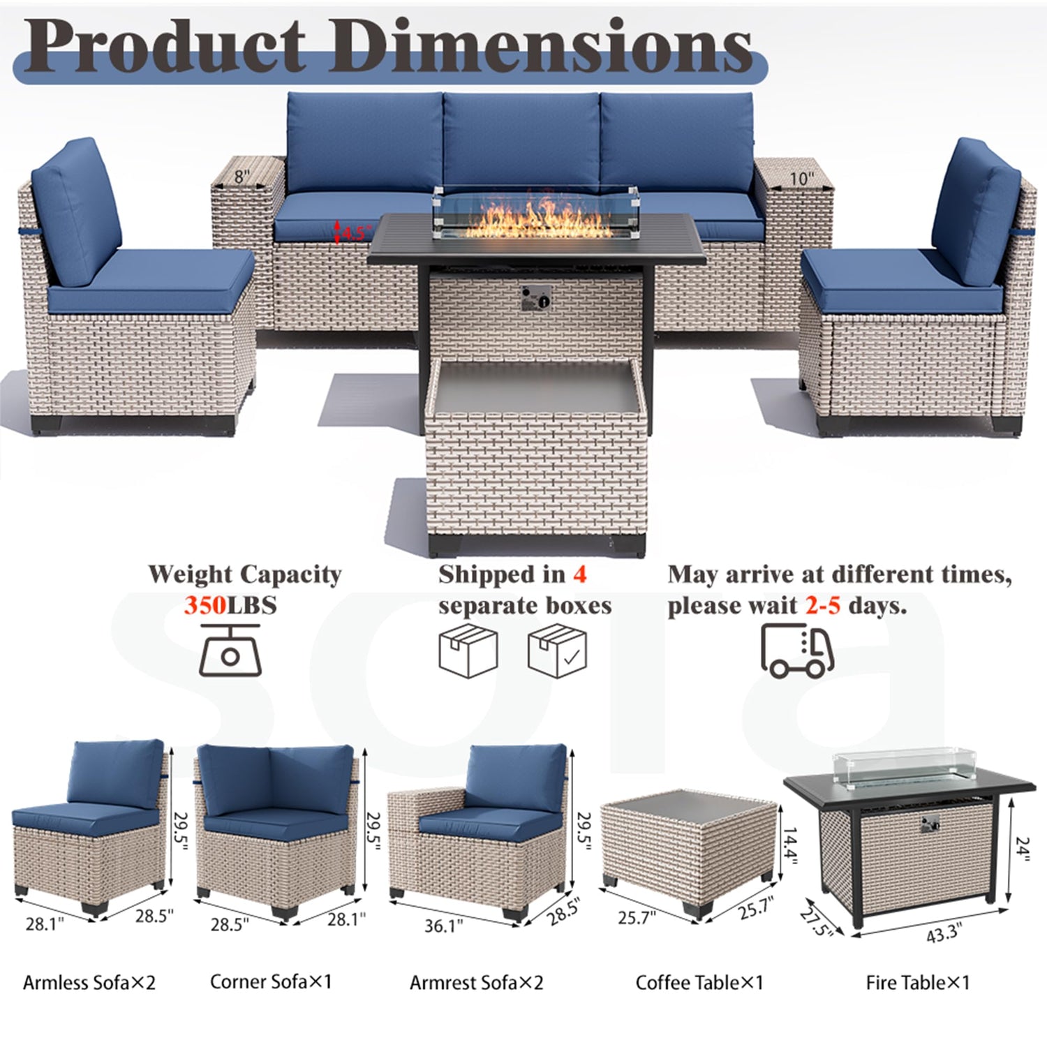 - Versatile Convertible Design: Switch effortlessly between armless and corner sofa using the outdoor furniture equipped cornerback. Hidden double-layer storage compartments under the 10-inch wide armrests, blending style with practical storage