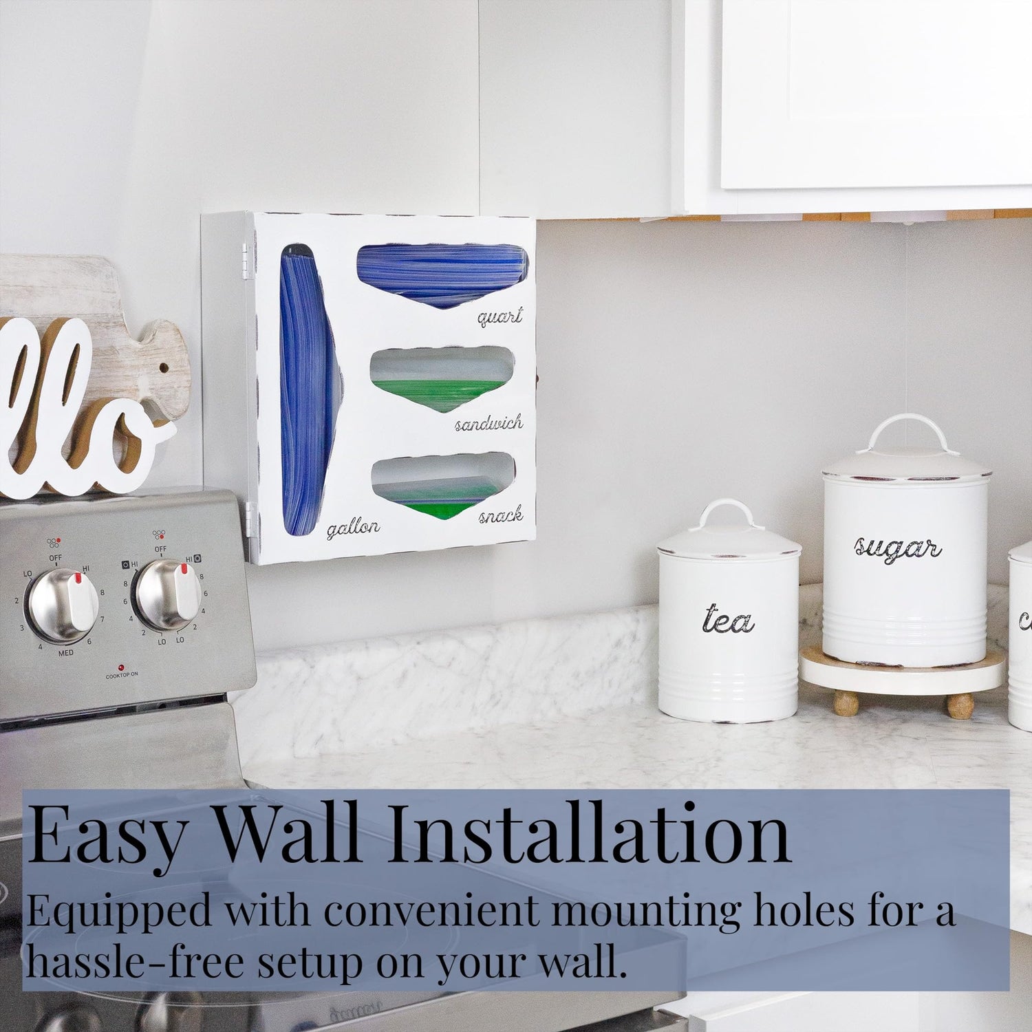 - 4-SIZE HOLDER: Sections for gallon, quart, sandwich and snack size bags
