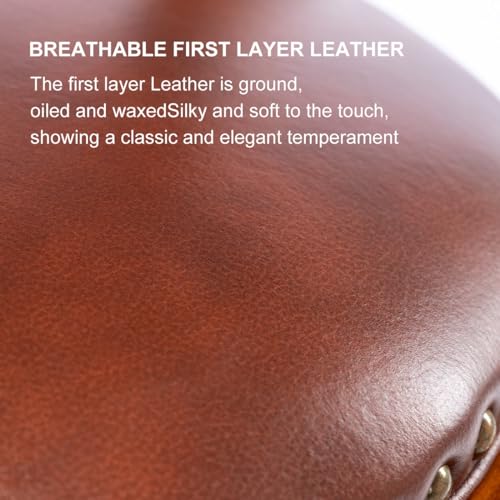 - 【The Material of the bar stools】Seat surface with cow top lather Upholstered.Filled with high-density sponge,curved fit backrest, soft and comfortable.Wood frame and backrest.