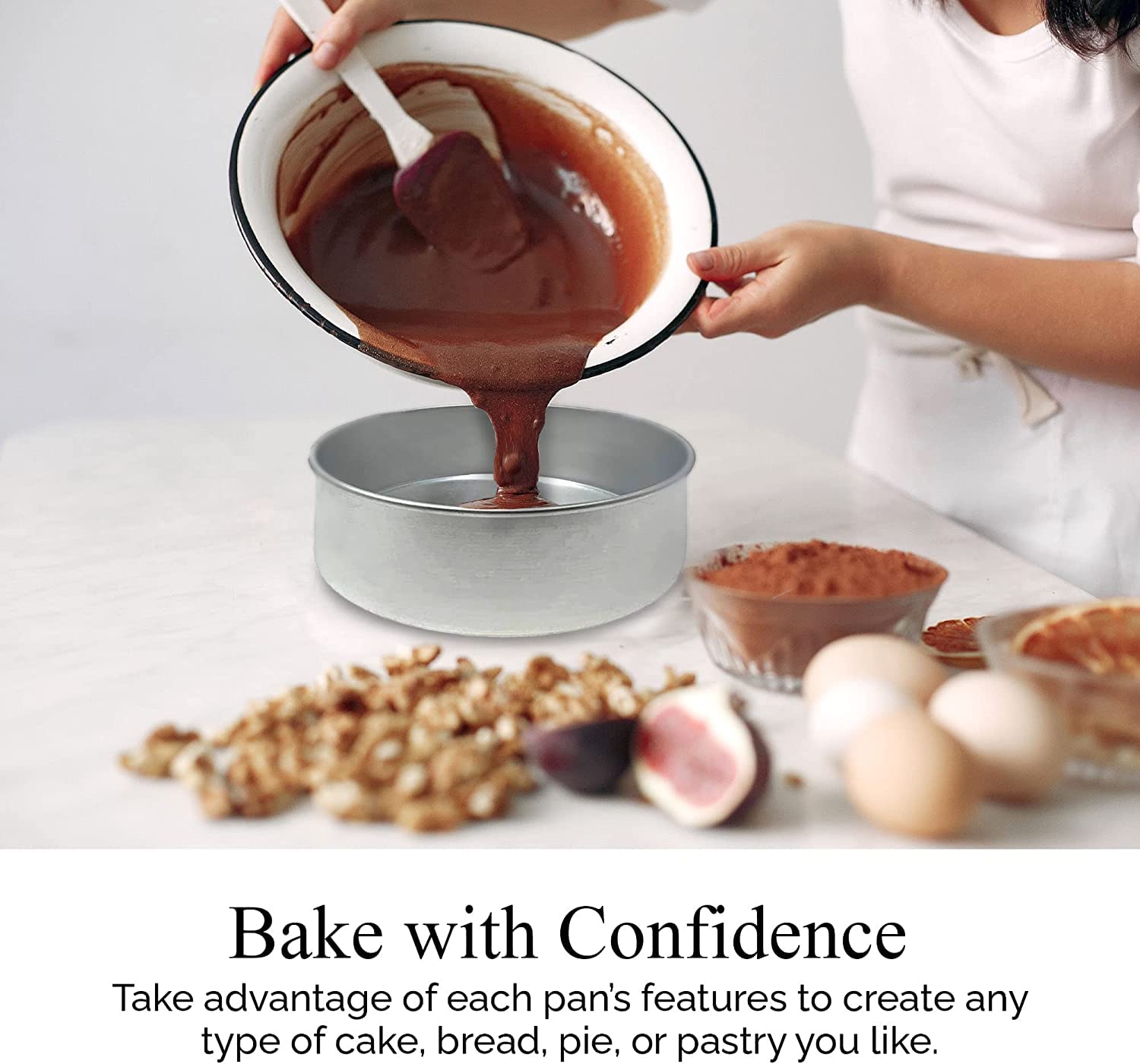 • Versatile Cake Pans – These 3-inch deep cake pans will bring out the best in your baking skills. With these three tall cake pans in three different diameters, you can bake smash cakes, birthday cakes, three-tiered wedding cakes, and more!