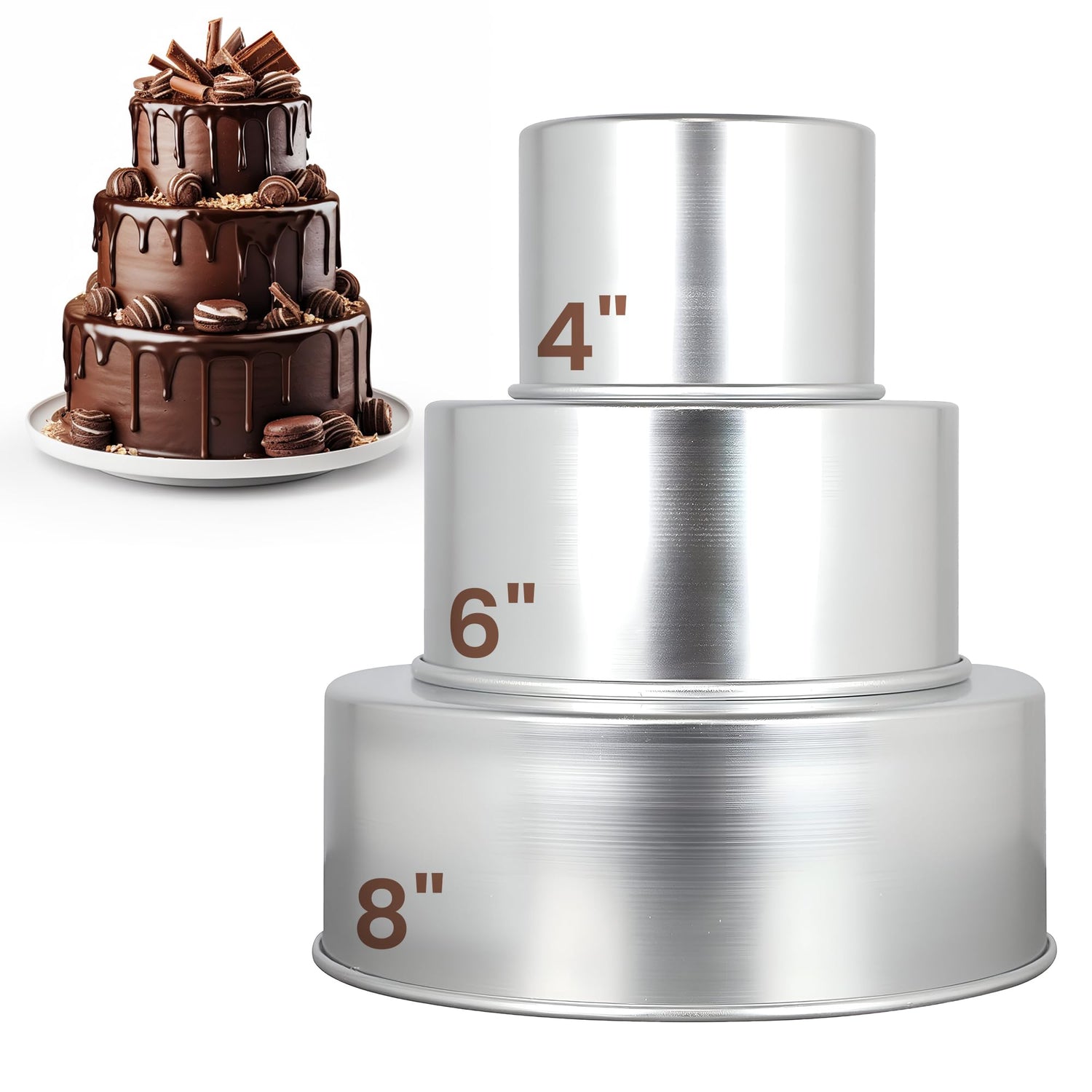 Aunt Shannon's Kitchen Tall Round Cake Pans - 4-inch, 6-inch, 8-inch Cake Pan Set for 3-Tiered Cake - Aluminum Cake Pans Sets for Baking Wedding or Birthday Cakes and More
