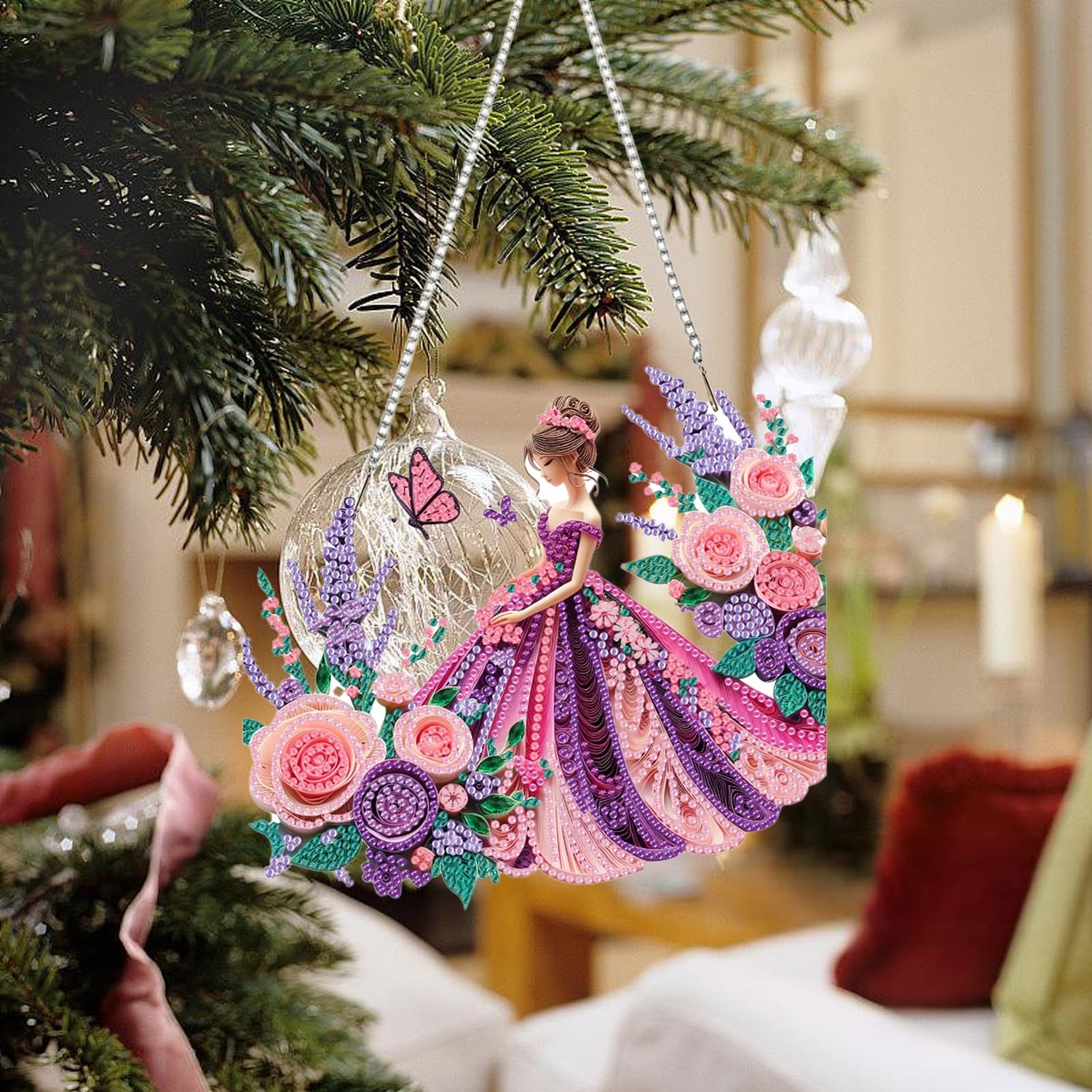 Auremi Flower Diamond Painting Pendant Kits,5D Princess Diamond Art Diamond Painting Hanging Kits,DIY Special Shaped Diamonds Painting Suncatcher Pendant Kit for Adults for Gift Wall Home Decor