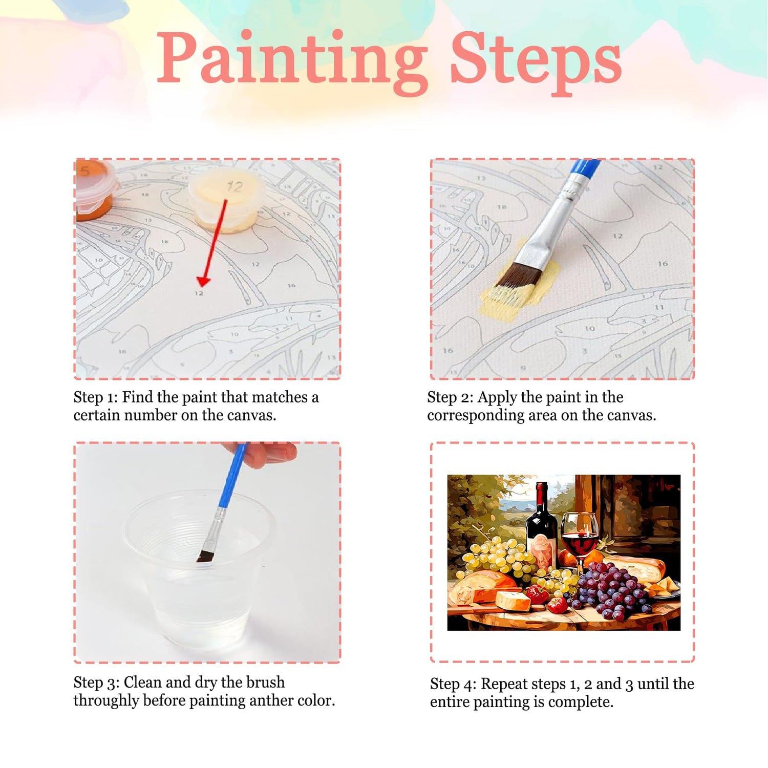 - Complete Paint by Number Supplies:This paint by number kit comes with three premium brushes for fine details and larger areas, along with rich, colorful acrylic paints—everything you need to bring your masterpiece to life.
