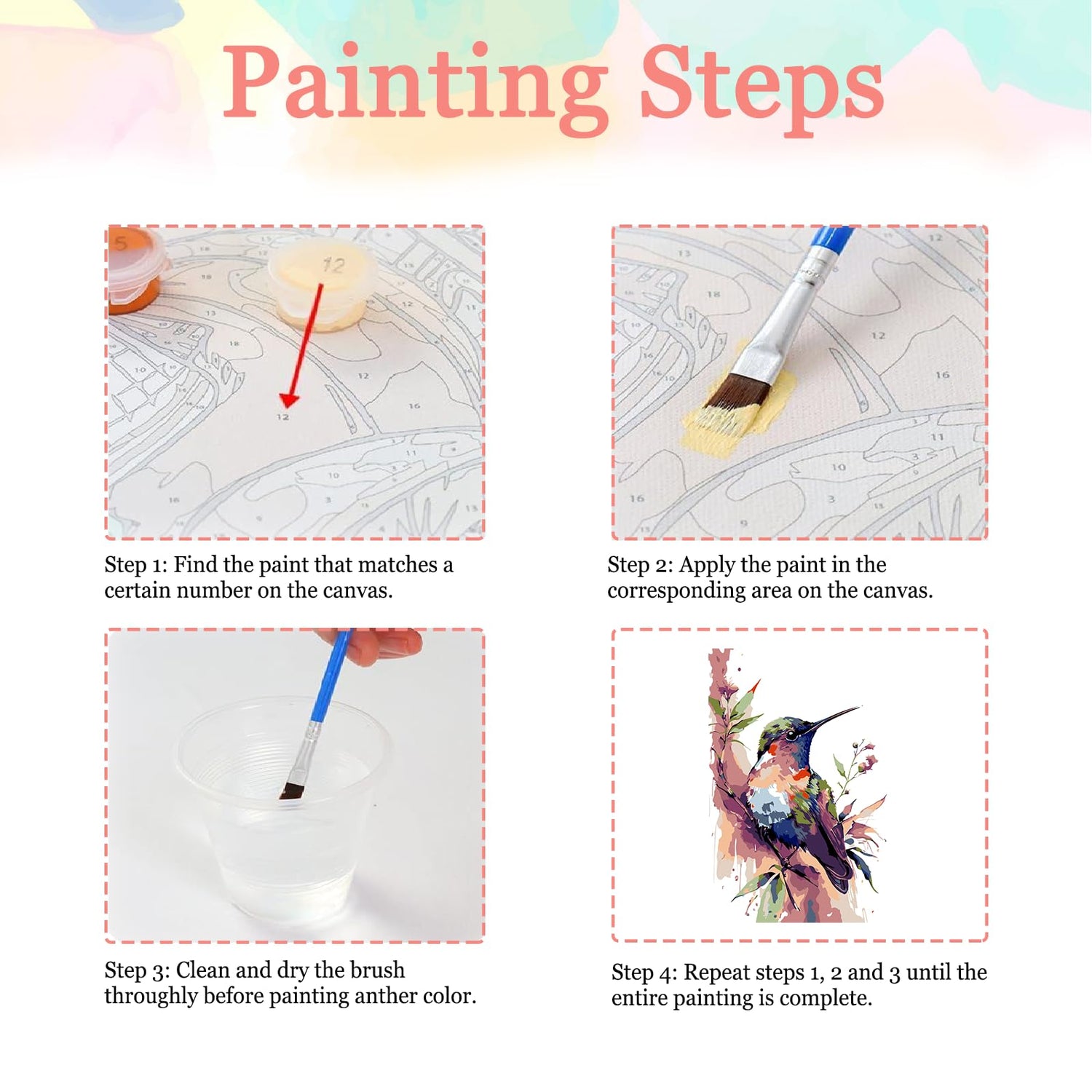 - Complete Paint by Number Supplies:This paint by number kit comes with three premium brushes for fine details and larger areas, along with rich, colorful acrylic paints—everything you need to bring your masterpiece to life.