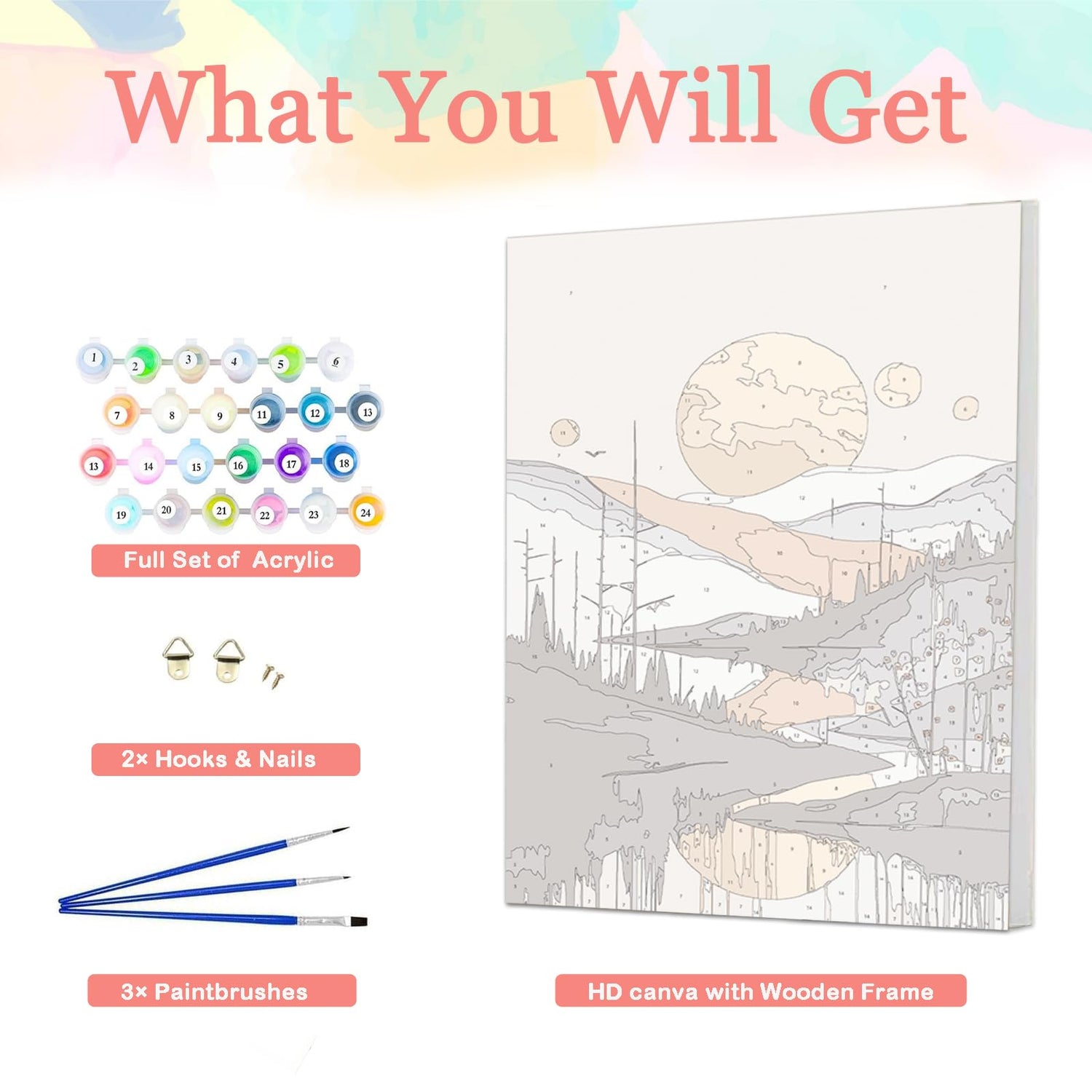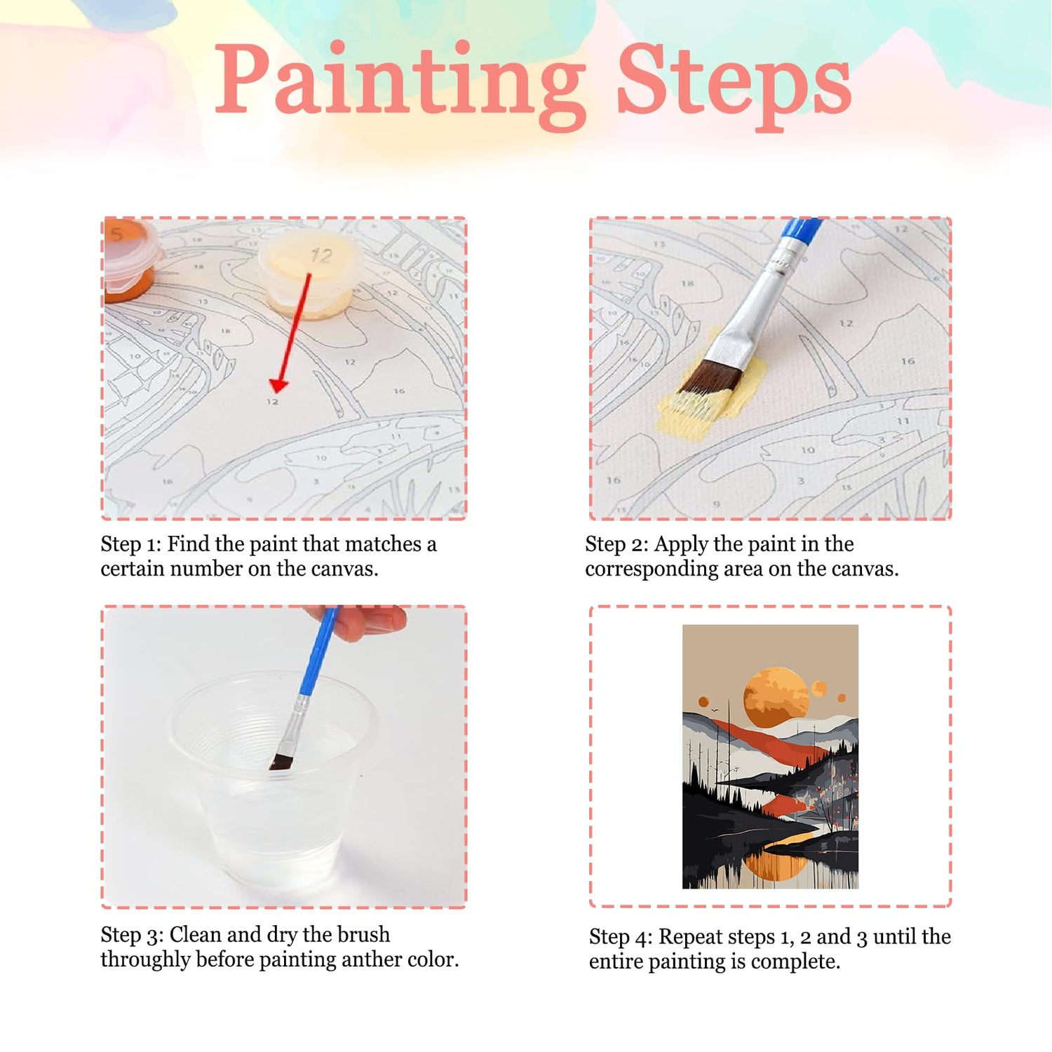 - High-Quality Waterproof Canvas for Paint by Number Projects:Our paint by number set features a durable, waterproof canvas with clearly printed numbers. The design ensures easy painting and long-lasting, vibrant artwork.