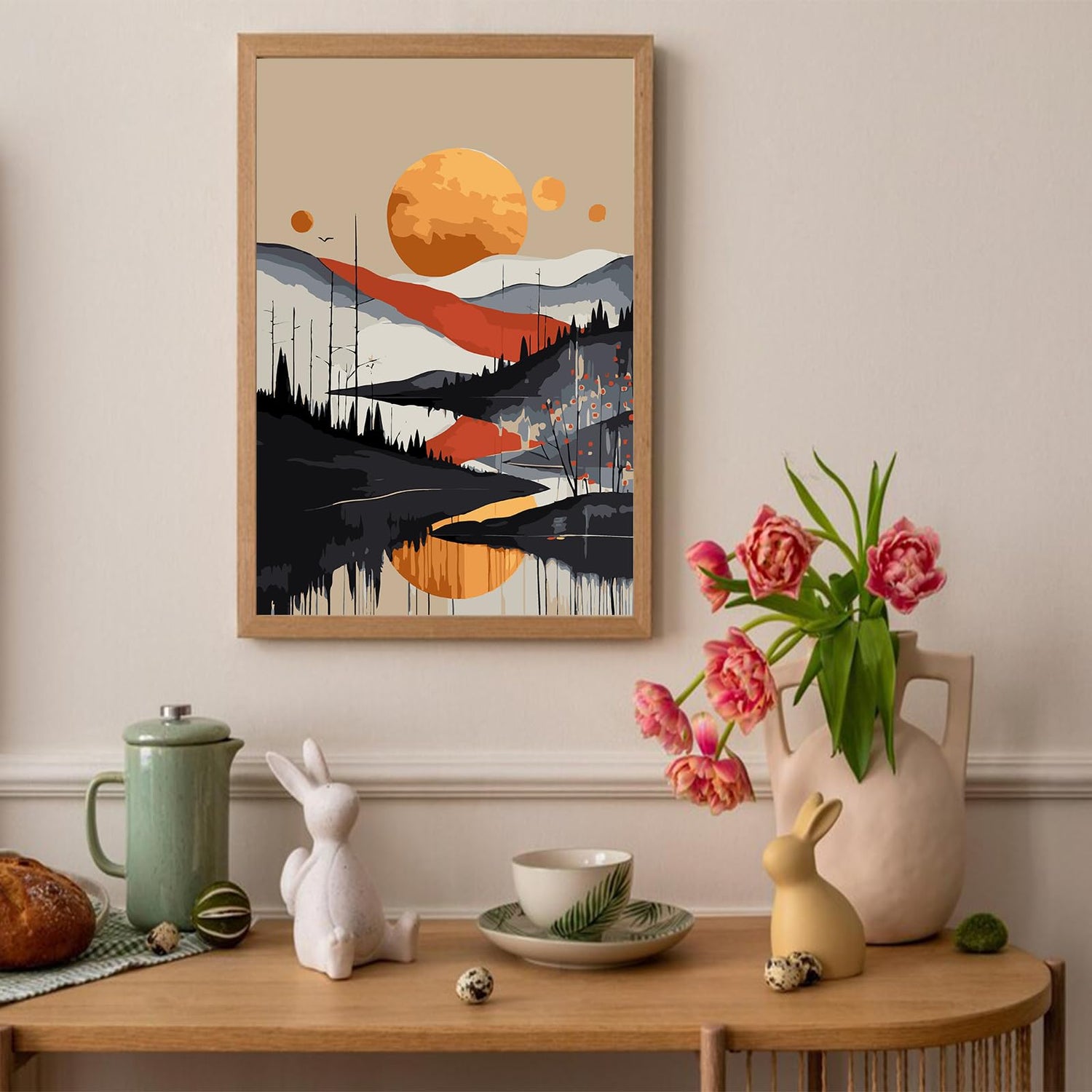 Auremi Mountain Paint by Numbers Kits for Adults Beginners,Easy Sunset Paint by Numbers on Canvas Framed DIY Landscape Painting by Numbers for Gift Home Wall Decor 8x12 Inch