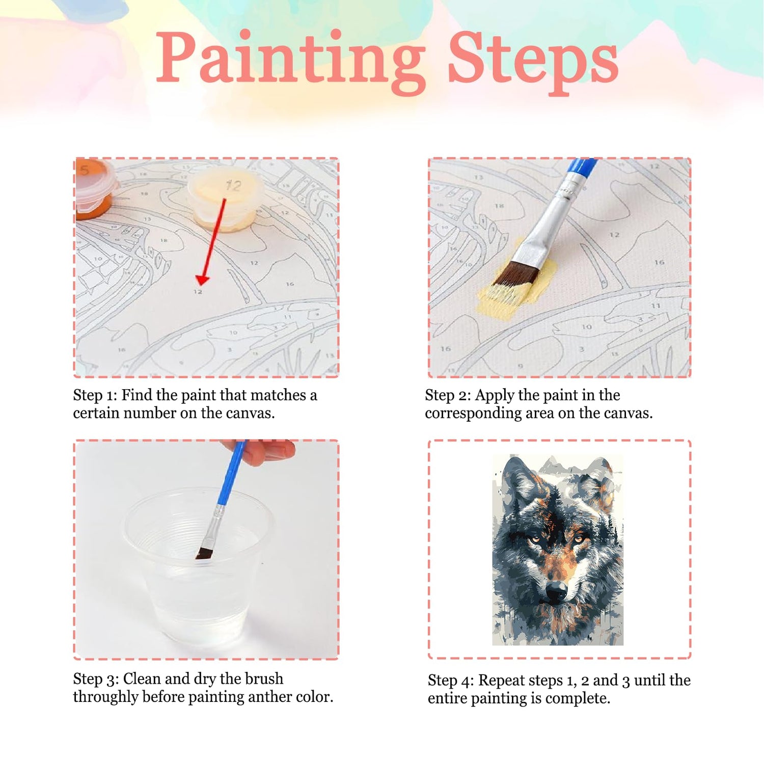 - Complete Paint by Number Supplies:This paint by number kit comes with three premium brushes for fine details and larger areas, along with rich, colorful acrylic paints—everything you need to bring your masterpiece to life.