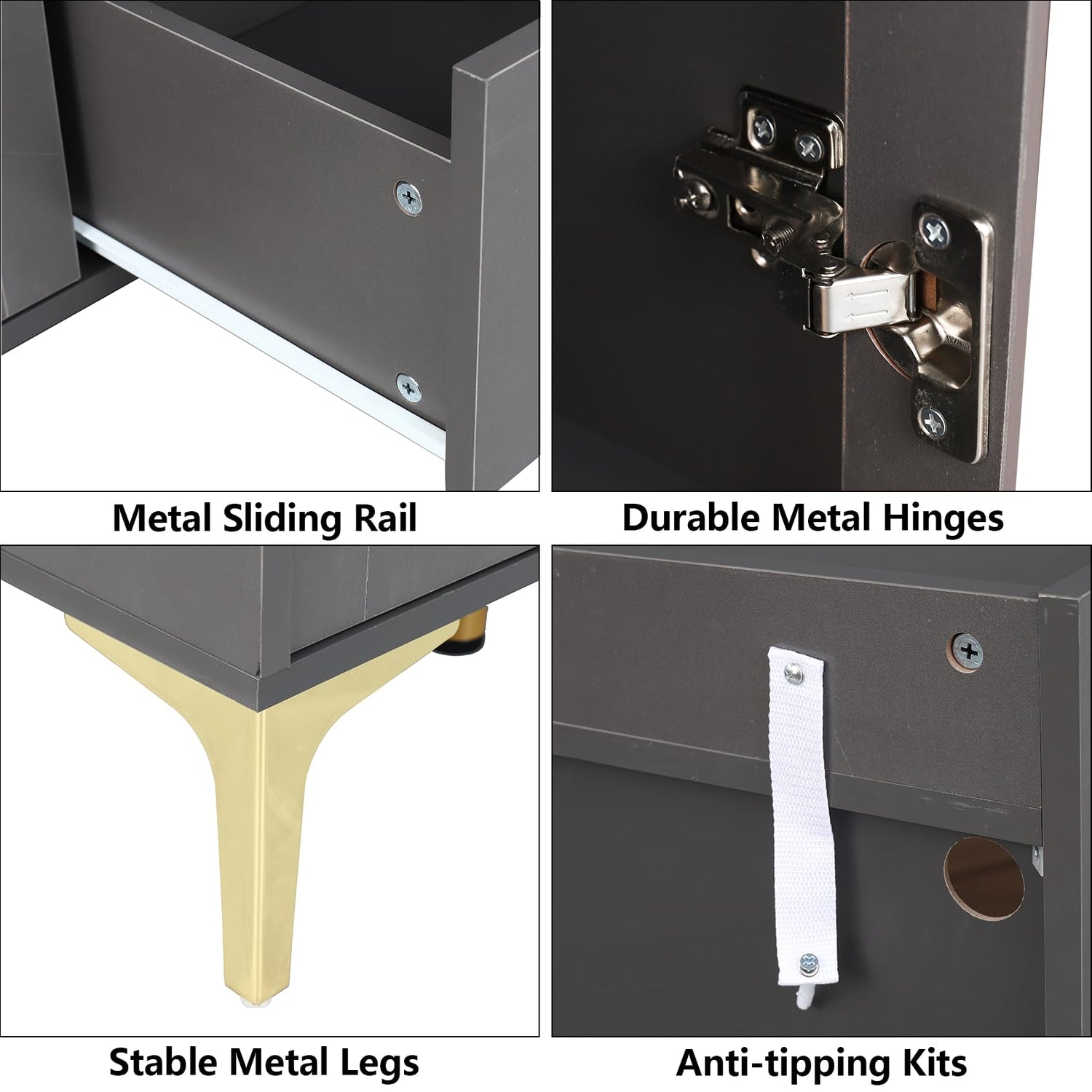 - 【Modern Design & Premium Materials】The kitchen sideboard cabinet is made of premium MDF for long-term use, scratch resistant. The 3 drawers slide easily on the sliding rail and push and pull the drawers without effort. The tempered glass door, golden metal feet-frame, and handles, fully demonstrate the beauty and practicality of modern home furnishings and can be compatible with various decorative styles.