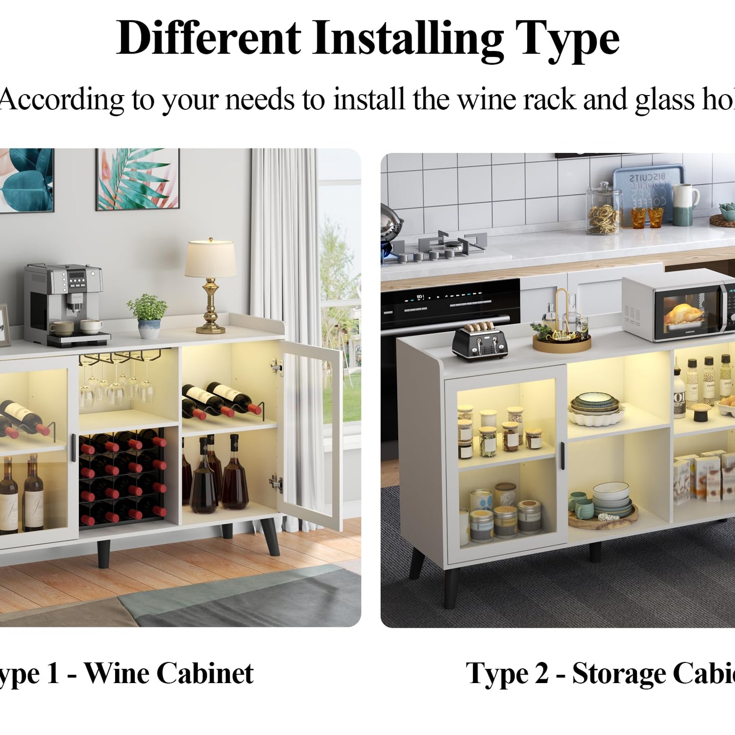 - 🍶【Easy Assembly and Buy with Confidence】 This Wine Cabinet includes all parts, hardware, and clear installation instructions. All parts have corresponding labels, and the installation steps are described in detail, so you can easily install the bar cabinet. And we provide friendly customer service, if you have any problems, please feel free to contact us, and we will reply within 24 hours.
