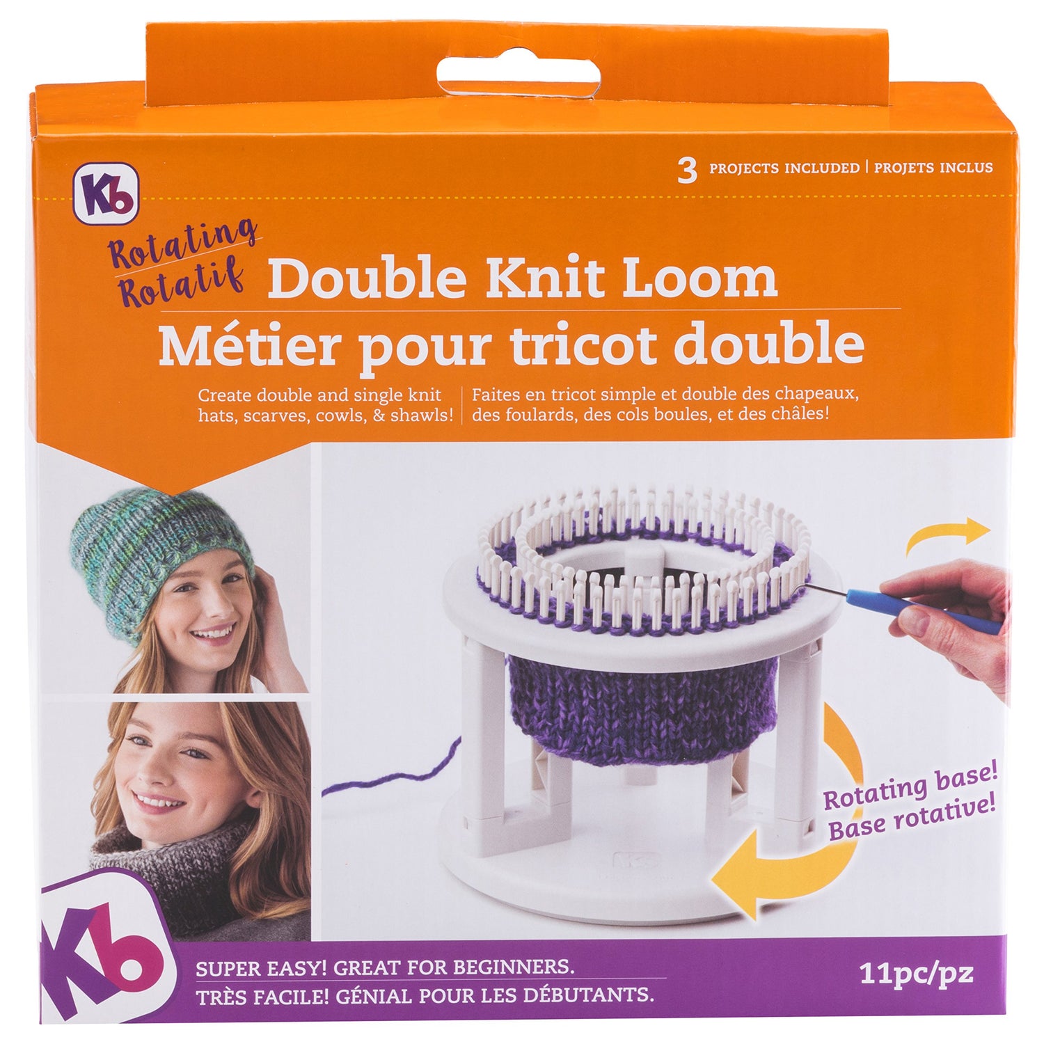 Details: The patented pending' rotating double knit loom is revolutionary in the loom market. For the first time knit double knit 'in the round'. the 'patent pending' rotating base makes knitting super easy, use on your lap, knit in one spot, the loom rotates as you knit
