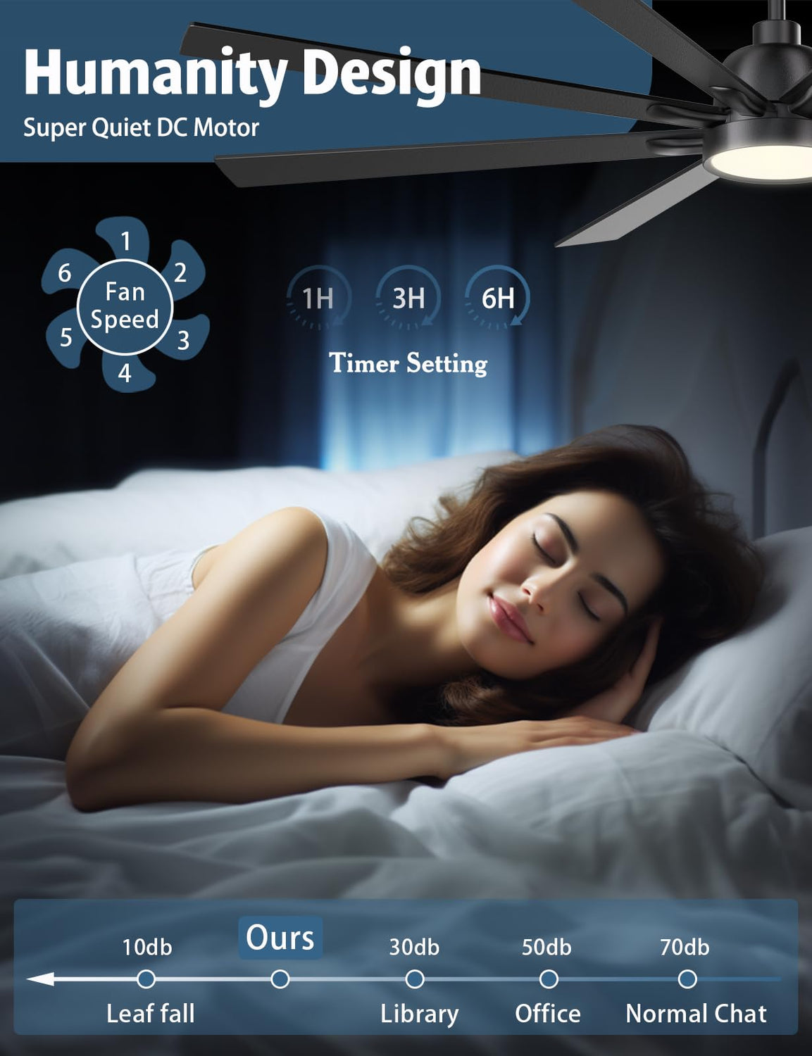 - Reversible Lighting & Ceiling fans - This large ceiling fan with light supports forward and reverse rotation, in the hot summer, forward rotation can blow fresh cool air, there are 6 gear speeds to choose from, the maximum airflow up to 7800CFM; in the cold winter, reverse rotation can balance the heat brought by the warm air equipment inside the house for you, giving you a safe and comfortable home all year round. (Balancing the heat inside the house in winter can avoid fire accidents).