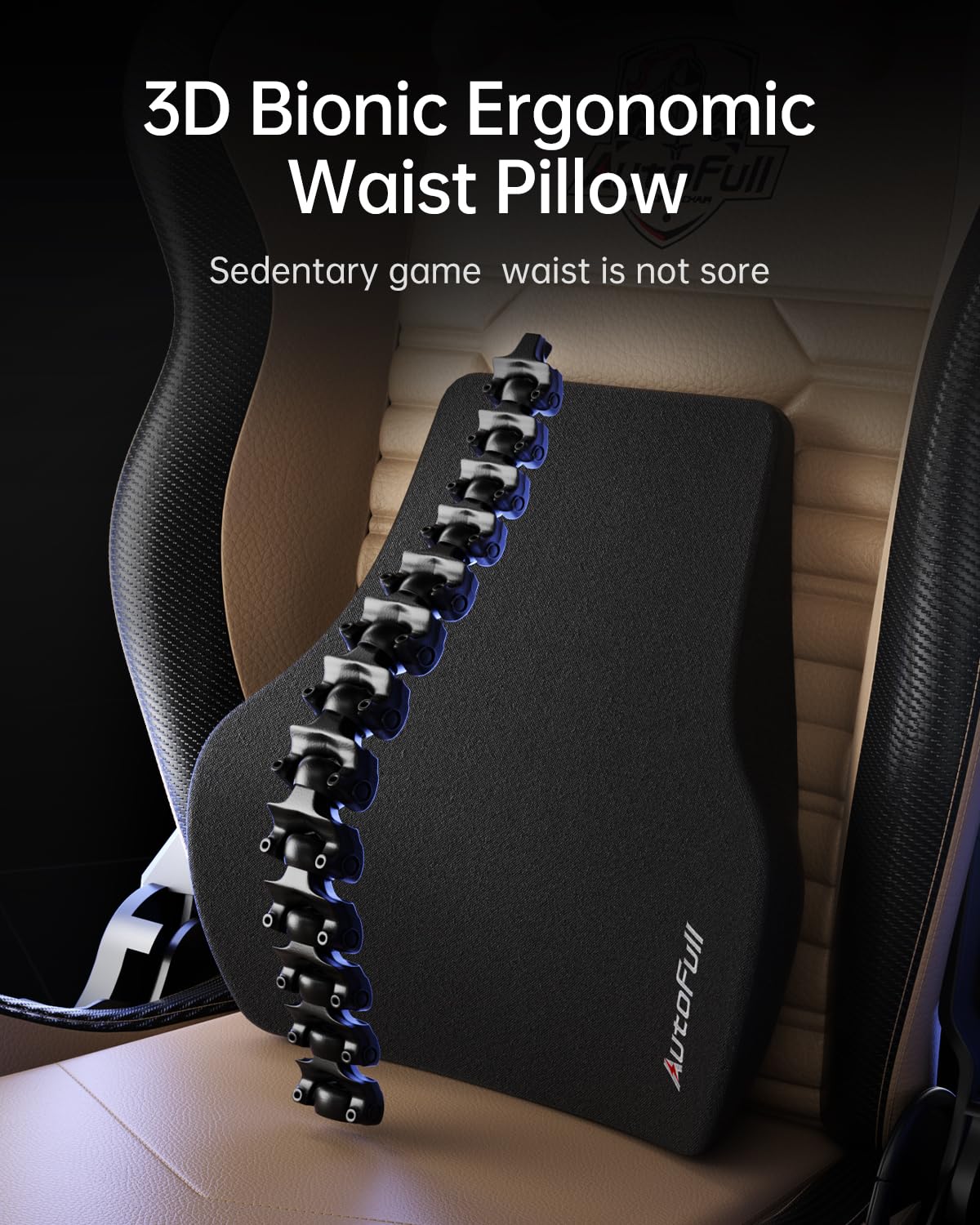 - Ergonomic Lumbar: PillowAutoFull computer chair conducted a survey of global users and found that ordinary lumbar pillows cannot provide good support for the back. The lumbar pillow is designed according to the natural curve of the human spine, which can better fit the back and disperse back pressure. And it uses high-density native memory foam to address the drawback of lumbar pillows being too hard and easy to collapse, thereby improving the lumbar pillow’s comfort.