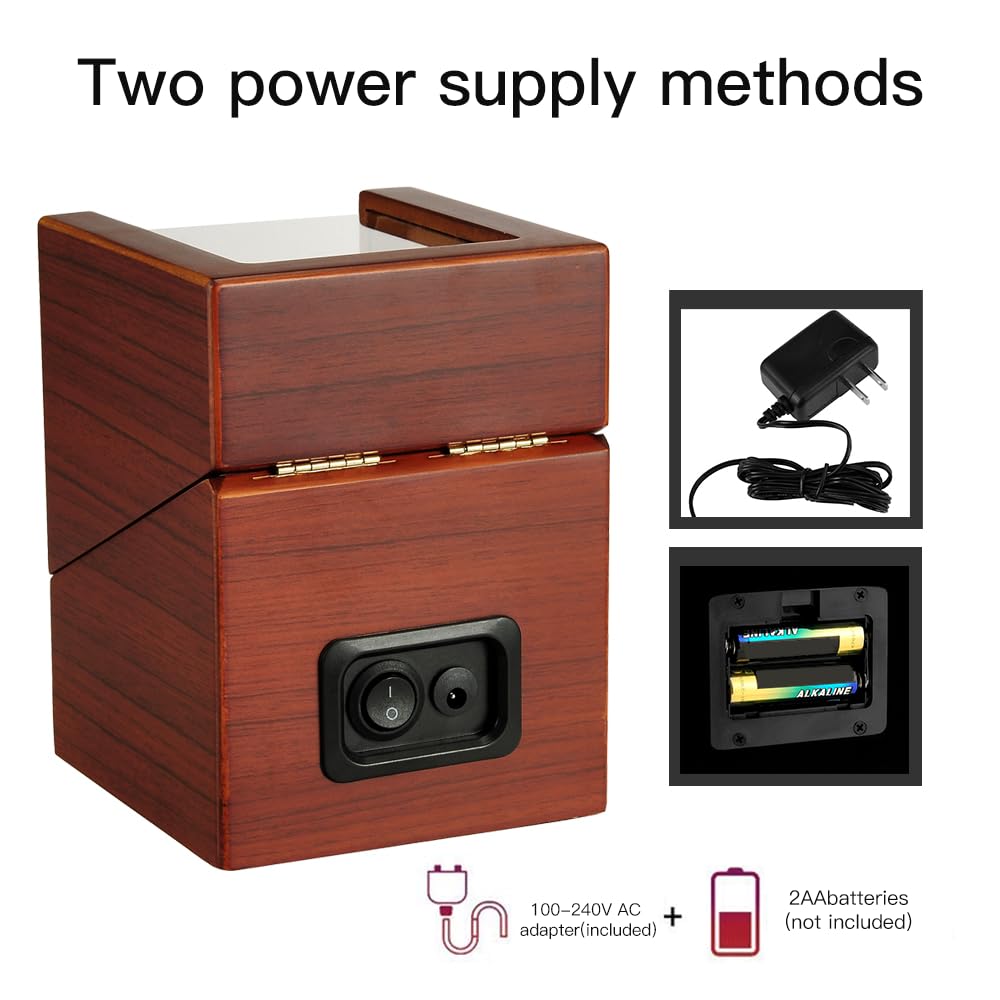 Automatic Single Watch Winder with Quiet Japanese Motor,AC Adapter or Battery Powered,Premium Leather Exterior and Soft Flexible Watch Pillows for Men's and Women's Watches (Wood texture-WW138R)