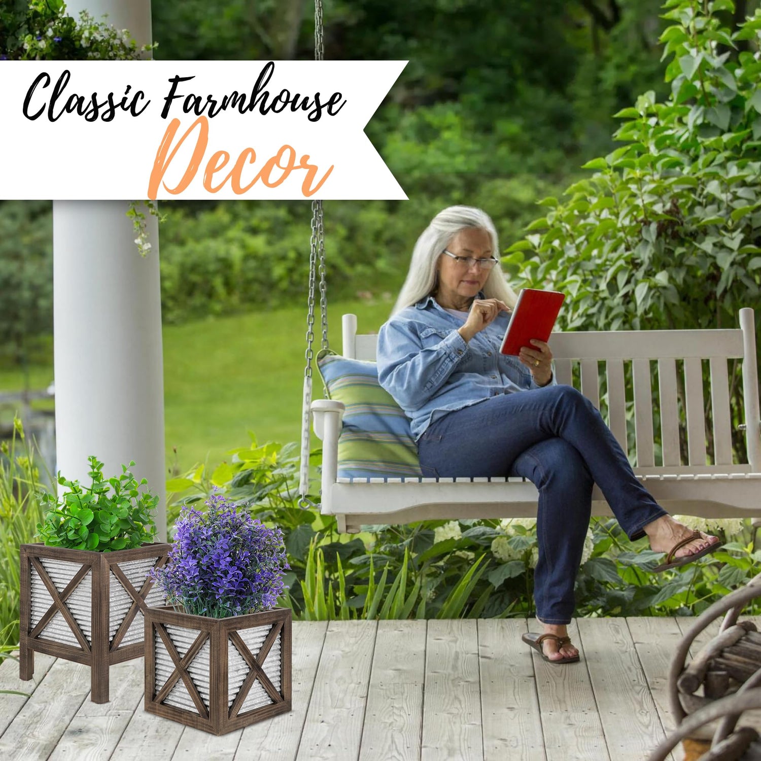 - Elevate Your Outdoor Aesthetic - Transform your porch or front entrance with our charming farmhouse planters for front porch. These rustic outdoor planters aren't just containers; they're statements, infusing your exterior with nature's charm. Welcome the outdoors in by adorning any room, corner, or fireplace hearth with this must-have accessory. Sit back and bask in the compliments on your decorating prowess