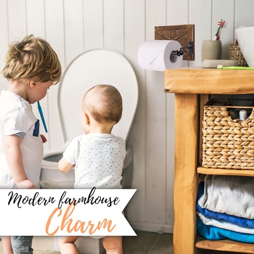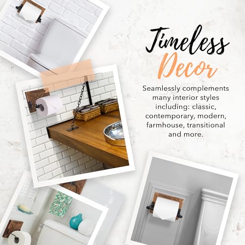 Autumn Alley Rustic Farmhouse Toilet Paper Holder - Farmhouse Bathroom Country Decor - Rustic Bathroom Accessories with Warm Brown Wood & Black Metal - Adds Western Decor Charm