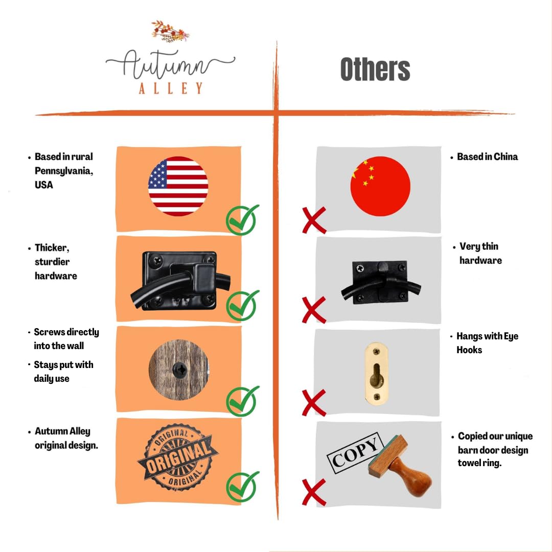 - Quality Materials and Construction - This rustic, barn-style farmhouse towel rack is crafted to last. Autumn Alley farmhouse bathroom accessories are made of solid wood exquisitely balanced with galvanized metal. Perfectly crafted with extraordinary attention to detail.