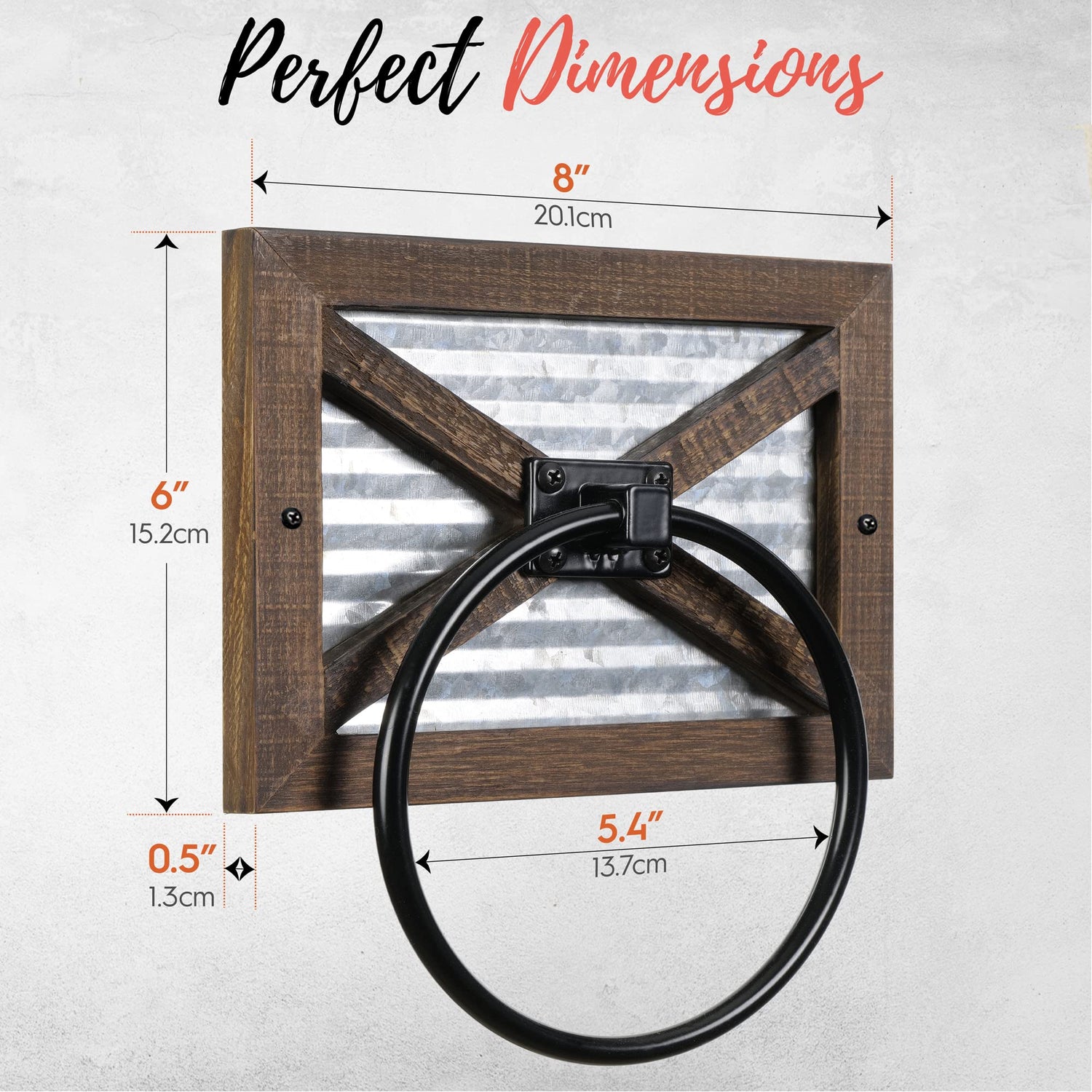 - Farmhouse Bathroom Hand Towel Ring Holder - A stylish country bathroom decor hand towel holder made of weathered solid wood and corrugated galvanized metal to add a rustic touch to any western bathroom wall or kitchen wall
