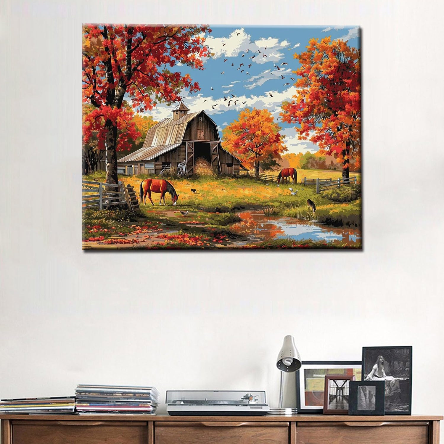 Autumn Farm Scenery Paint by Numbers Kits 16x20 inch Canvas Farm Barn Horse Landscape DIY Oil Painting for Adults Beginner with Brushes and Acrylic Pigment-Nature Fall Scenery Photo Gift(Frameless)
