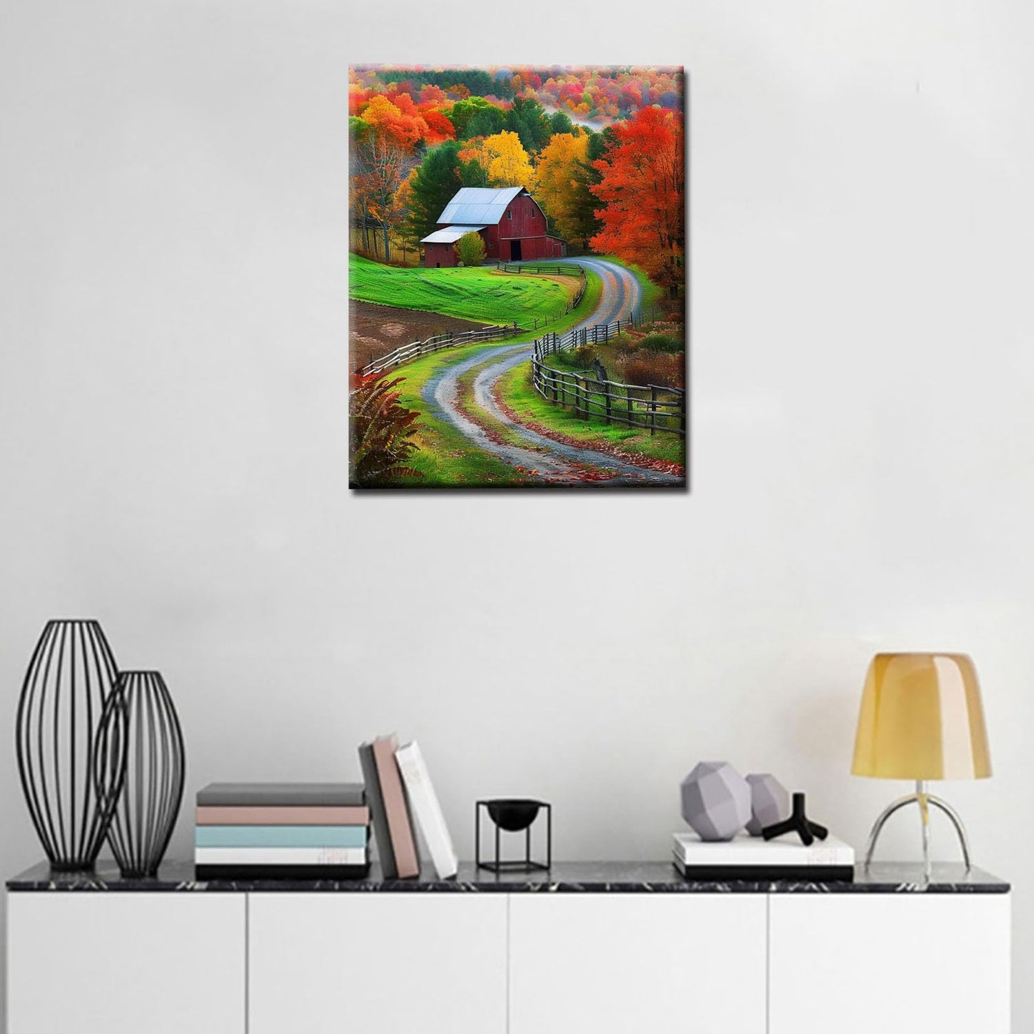 Autumn Mountain Forest Paint by Numbers Kits 16x20 inch Canvas Wooden House DIY Oil Painting for Kids, Adults Beginner America Bucolic Farm Artwork with Brushes, Girl Boy Landscape Gift(Frameless)