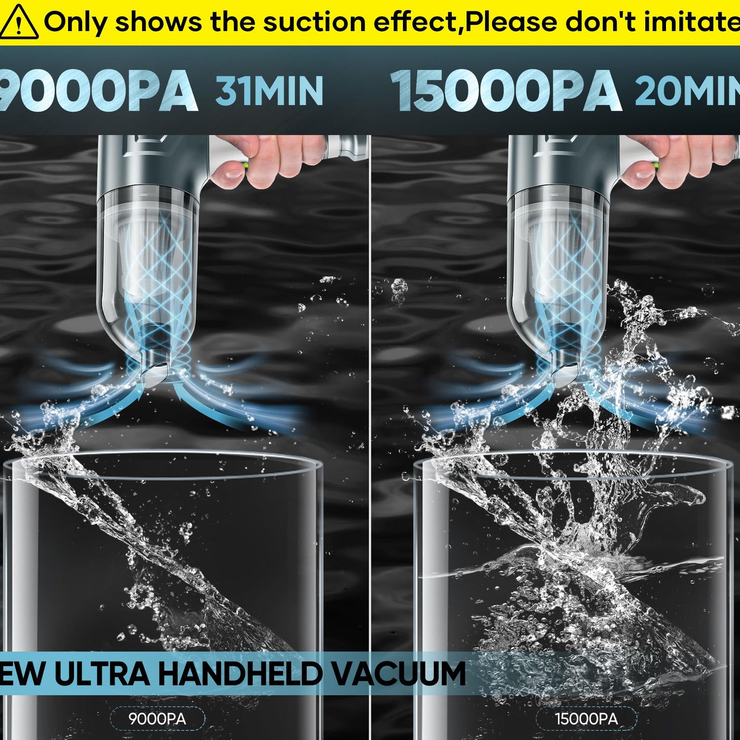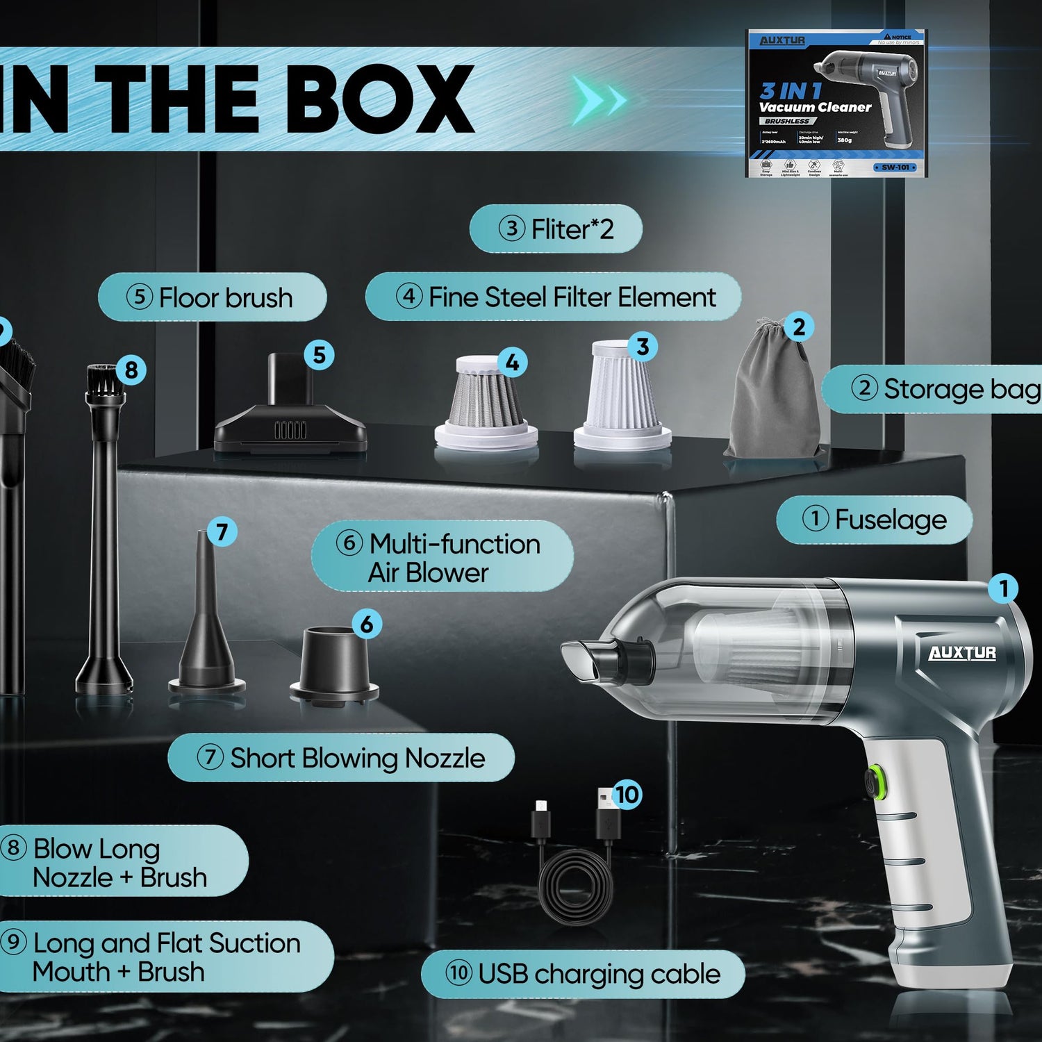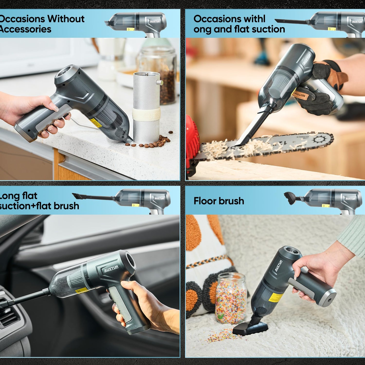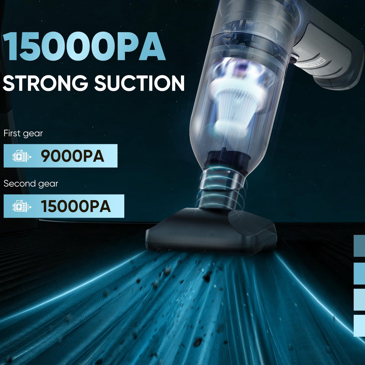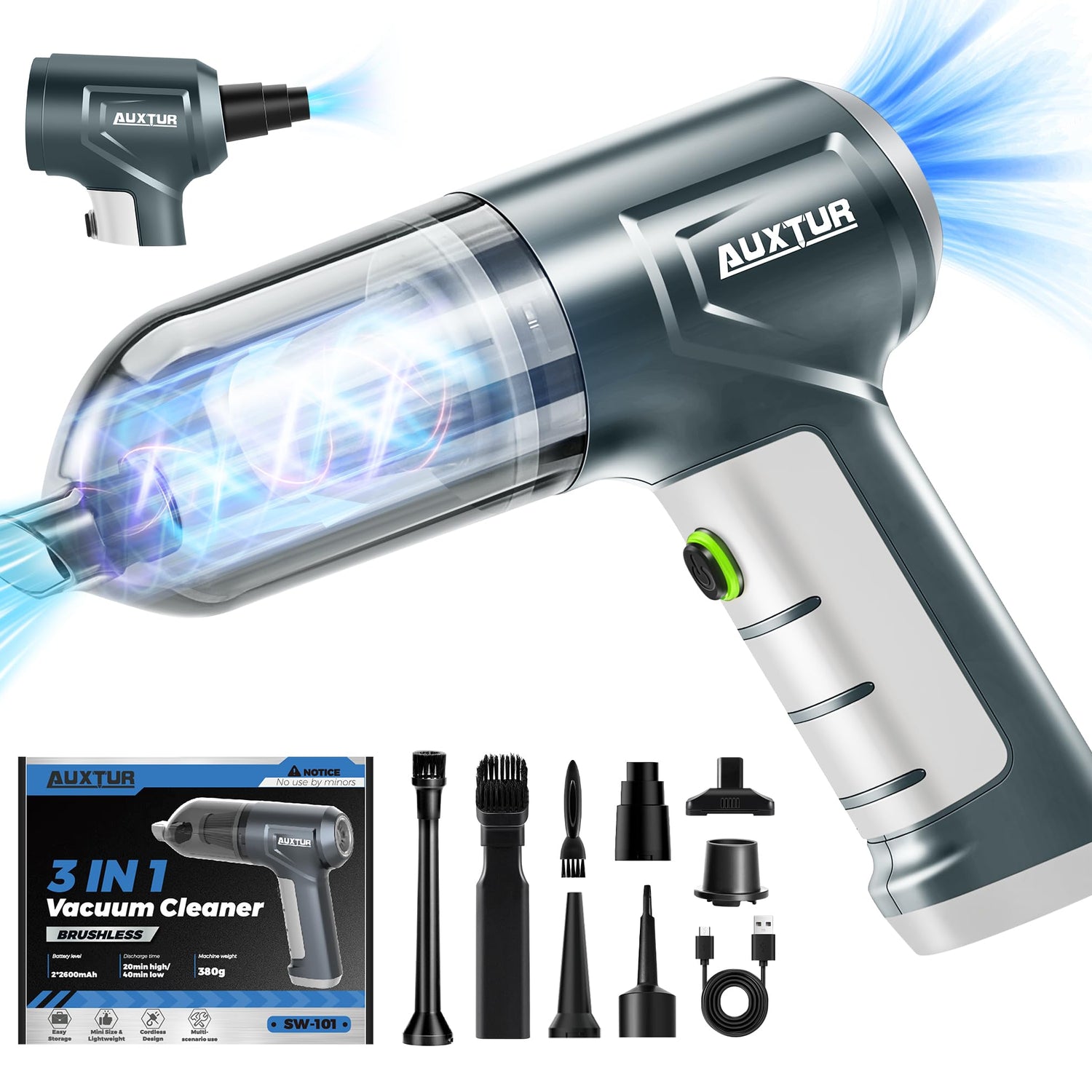 AUXTUR Car Vacuum Portable Cordless Handheld 3 in 1 High Power|15000PA Brushless Motor|Super Suction Mini Car Vacuum with Super Endurance for Car and Home