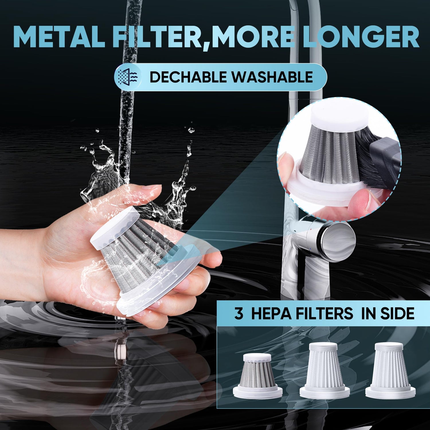- 【Cordless and Rechargeable】Say goodbye to tangled cords and limited reach with this cordless car vacuum cleaner. This small car vacuum is designed specifically for easy maneuverability, making it ideal for various purposes. Whether you need a mini car vacuum cordless, car vacuum cleaner, car vacuum detailing kit, or a portable hand held vacuum cordless, this rechargeable device has got you covered. It's also lightweight and perfect for cleaning mattresses, couches, decks, and more. With its long-lasting power, you'll never have to worry about it.
