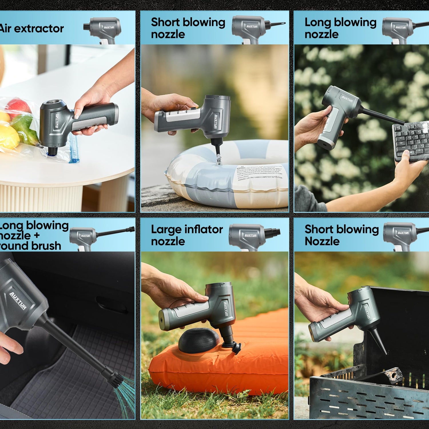 - 【Versatile 3-in-1 Design】Not just a mini car vacuum cordless, this car vacuum detailing kit can also be used as a blower, pump, car vacuum cleaner high power, car vacuum portable cordless, and car vacuum detailing kit. Say goodbye to multiple tools and enjoy the convenience of a single versatile device. Whether you need a portable carpet cleaner, lightweight vacuum, mattress vacuum cleaner, couch cleaner machine, or even a deck cleaner, this car vacuum portable cordless has got you covered.