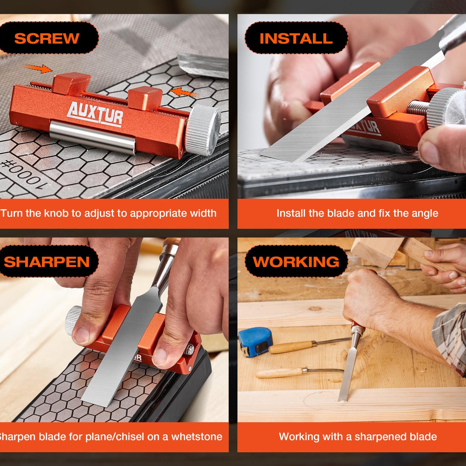 AUXTUR Honing Guide for Woodworking,Honing Steel Center Sharpening Holder,Complete Sharpening System Woodworking Tools for Chisel Sharpening and Plane Restoration (guide tool)