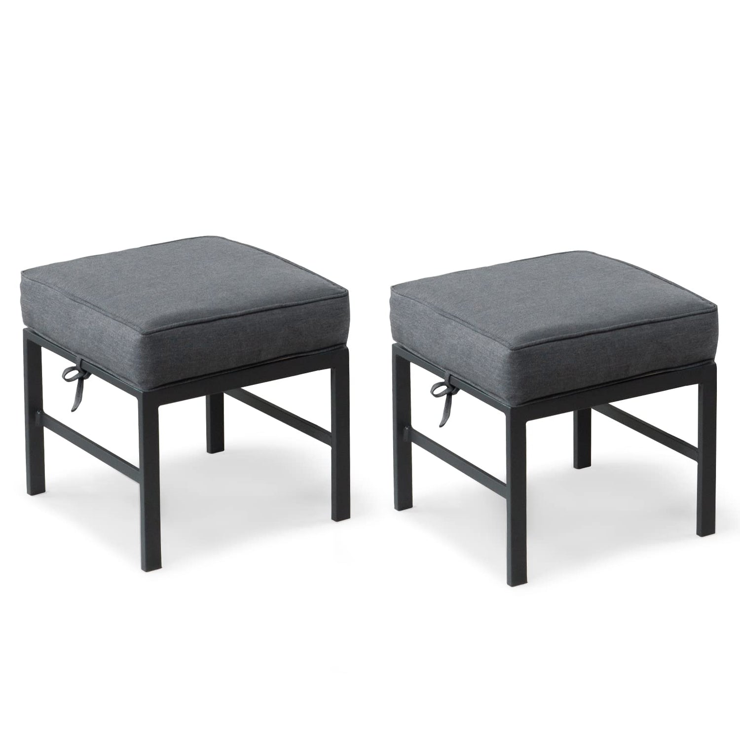 - Aluminum Material: The 2 pcs aluminum outdoor footstools are constructed with a powder-coated aluminum frame, rust proof and all weather resistant. In addition, the lightweight patio ottomans can be easily moved anywhere