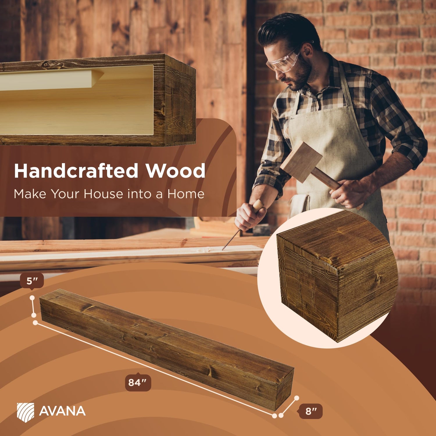 Avana Rustic Fireplace Mantle Shelf 84 Inches for Home Decor/Wall Decor - Handcrafted Wood Shelf for Wall - Decorative Fireplace Mantel Shelf - Farmhouse Mantle Decor 84 X 8 X 5 - Rustic Traditional