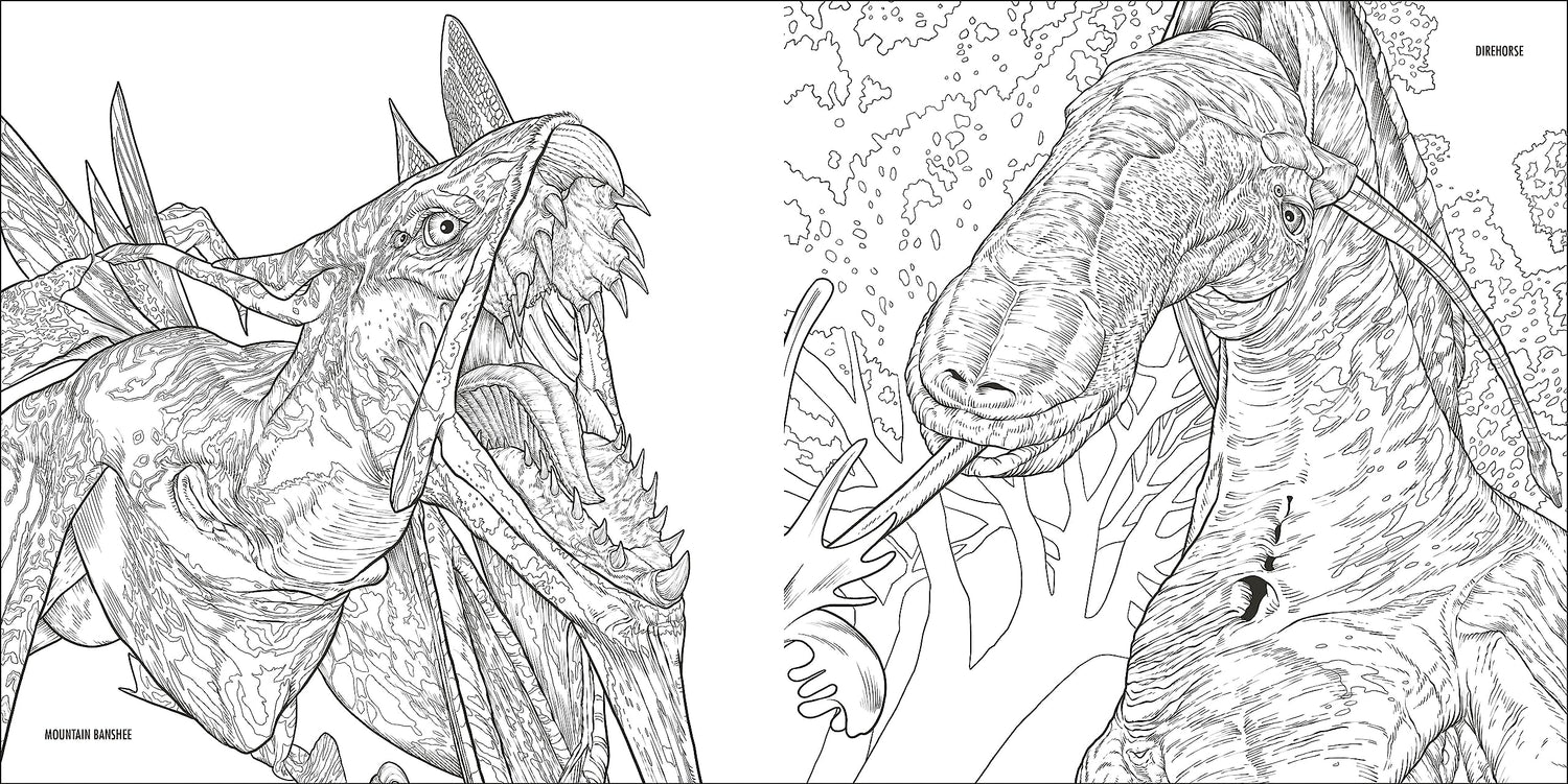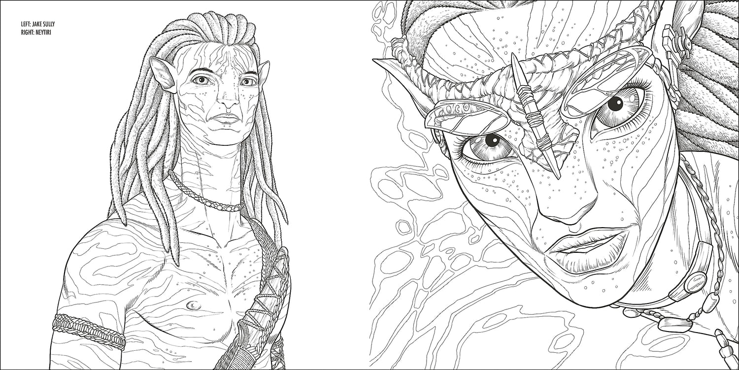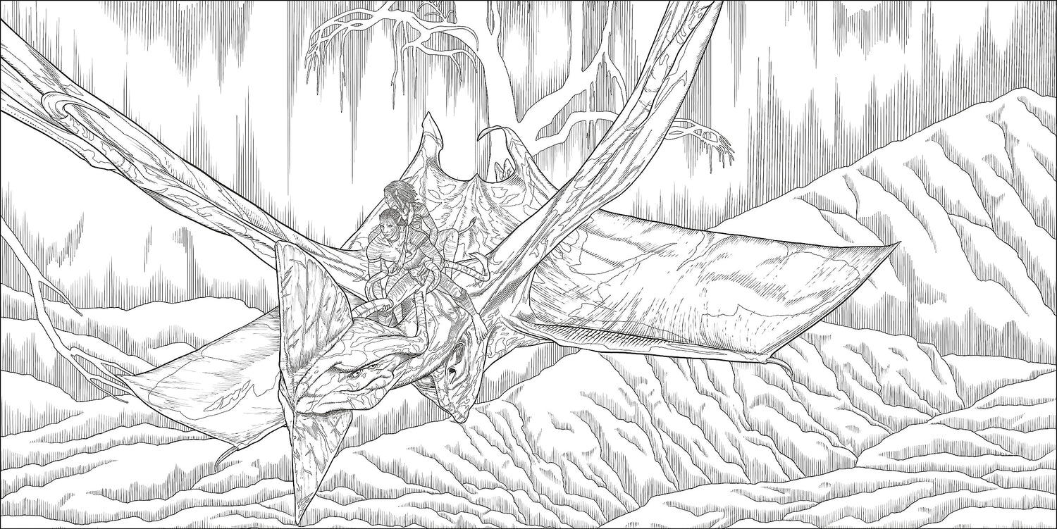 From the tops of the Hallelujah Mountains, through the Na’vi caves, to the depths of the Pandoran oceans, find your favorite characters, flora, fauna, vehicles, and locations here and embark on a mindful coloring adventure of your own.