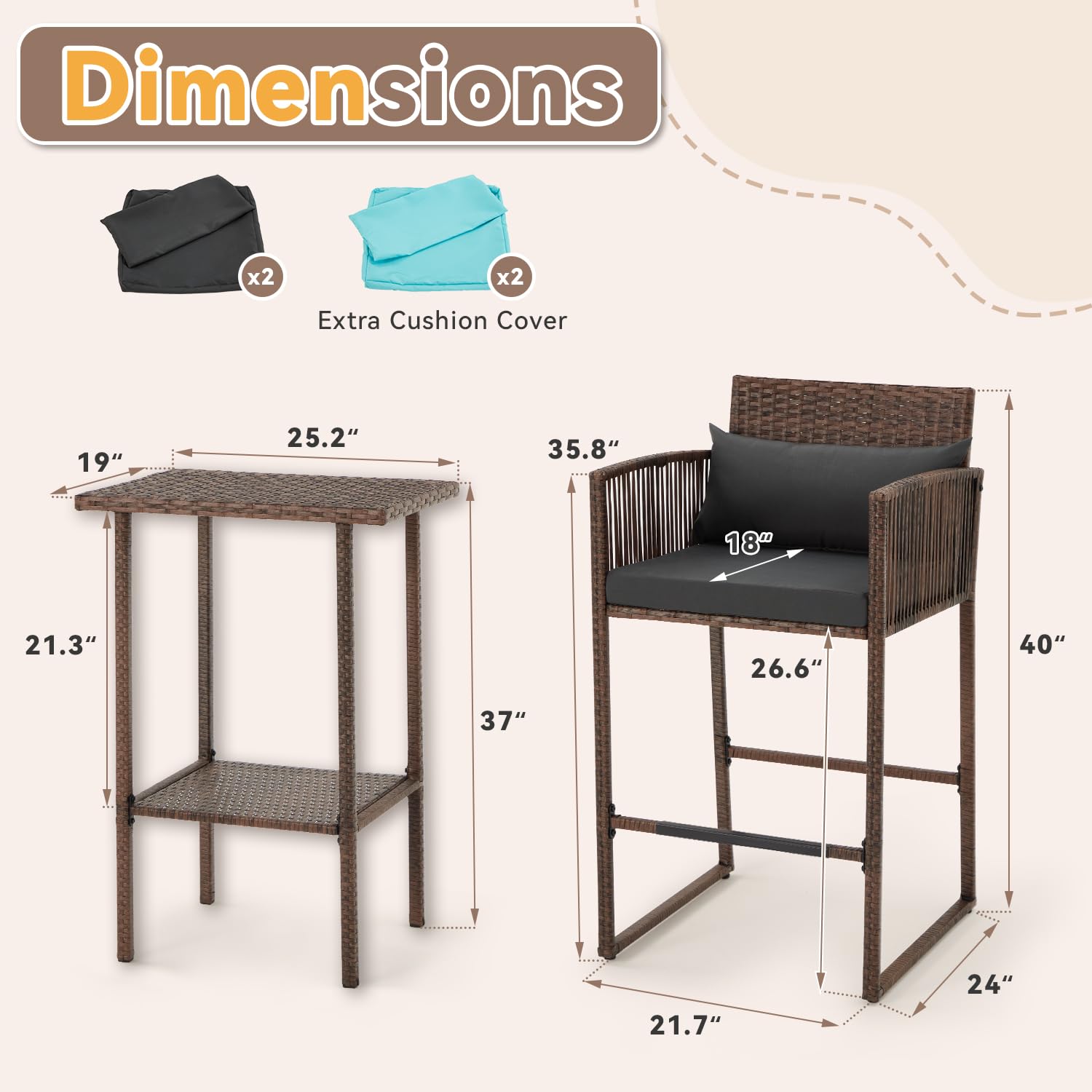 - 【Easy Installation】 Delivered in one package, our 3 piece patio set includes all necessary installation hardware. The table's overall dimensions are 25.2"L x 19"D x 37"H, while the chairs measure 21.7"L x 24"D x 40"H. Setting up your outdoor oasis has never been easier.