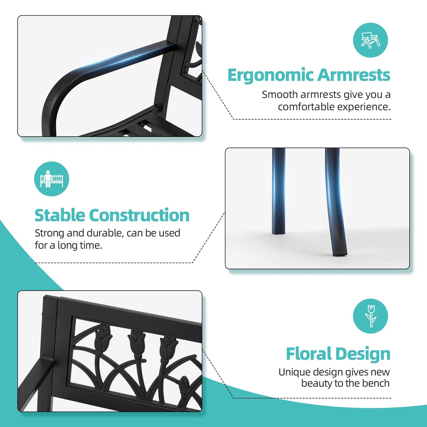 - 【Multi-functional Bench】This bench is suitable for outdoor park, garden, patio, porch and other scenes. It is a good choice for sitting down and enjoying the view, chatting with friends, sunbathing as well as reading books.