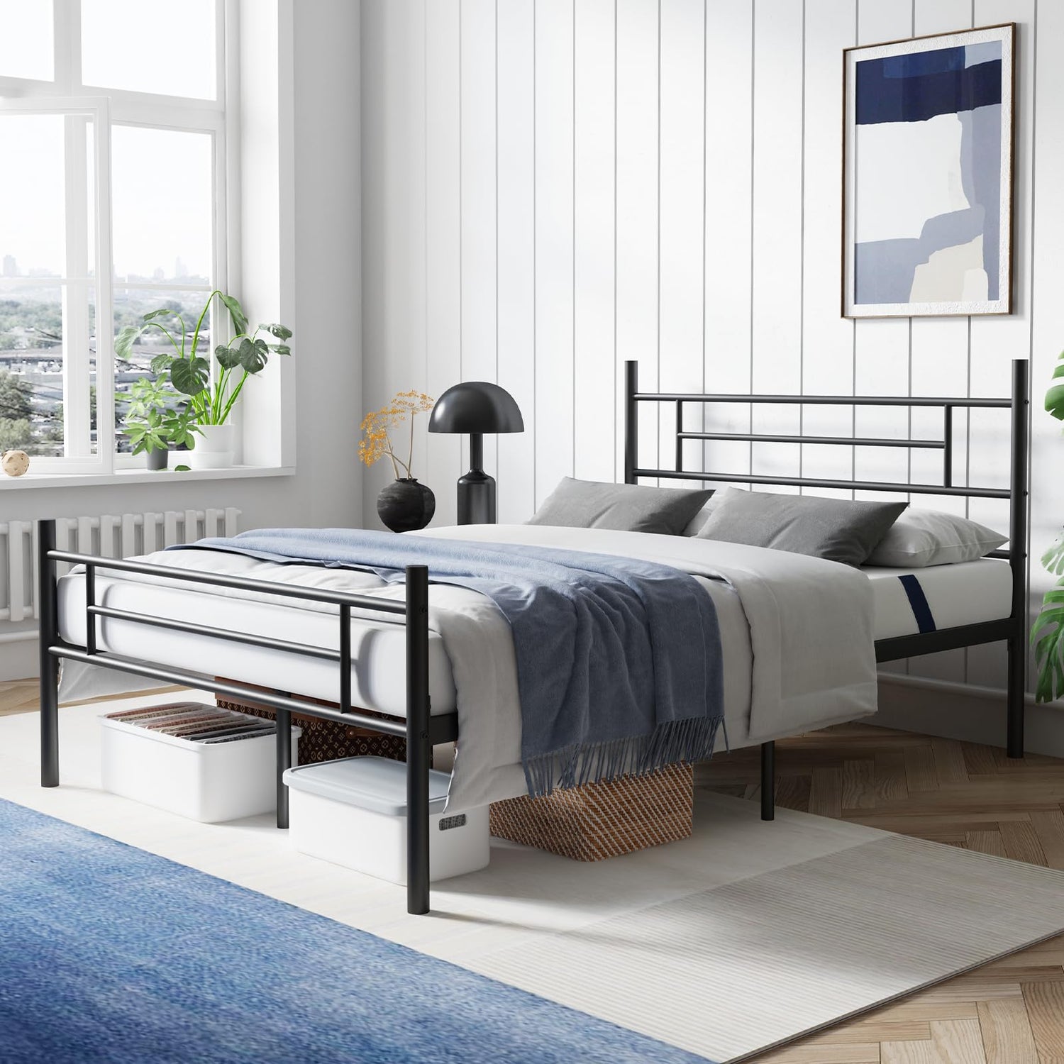 Avenco Metal Platform Full Size Bed Frame with Classical Headboard Footboard, 14 Inch Bed-Frame, Adequate Under Bed Storage, Strong Metal Slats Support, Mattress Foundation, No Box Spring Needed