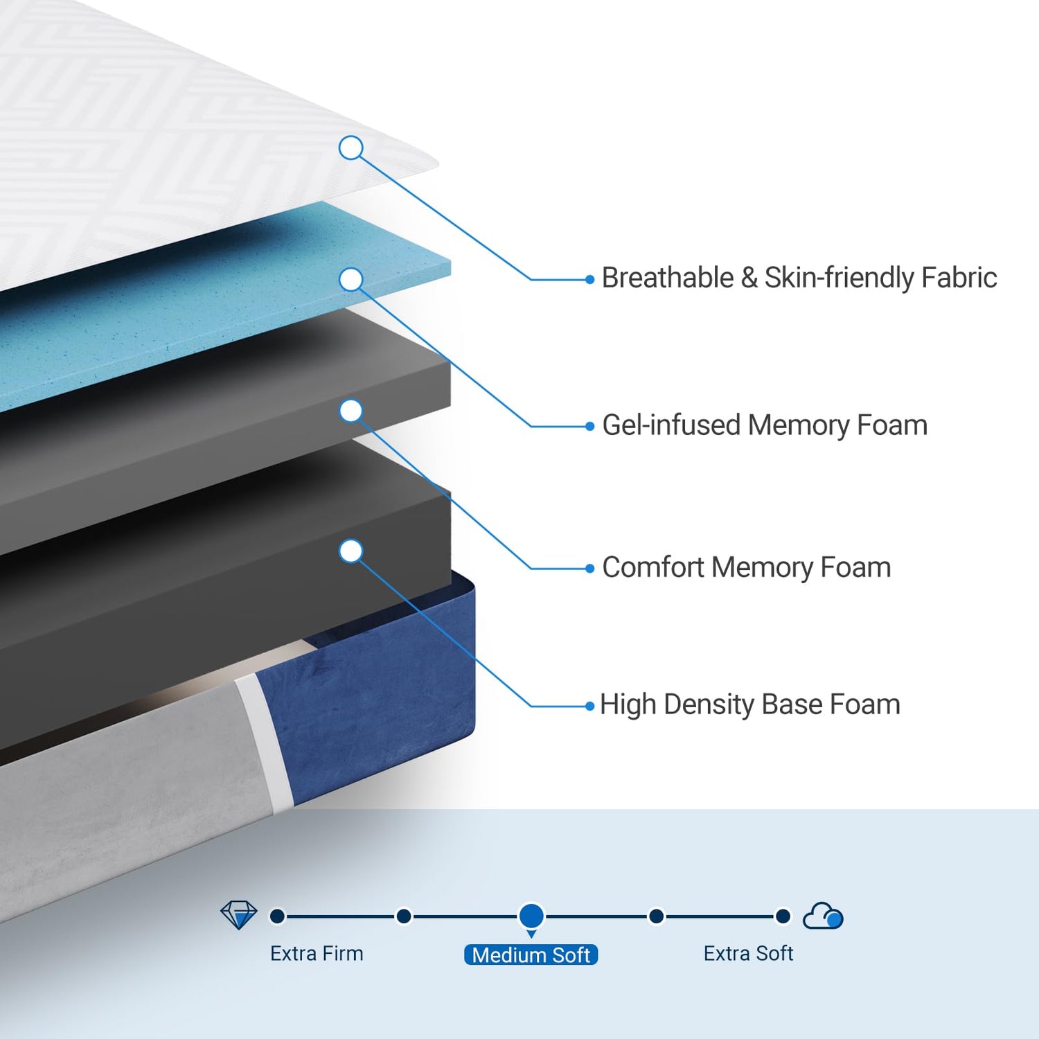 - Contouring Rebounce & Pressure Relief: This 10-inch Twin size mattress features a 4-layer design, with a top layer of memory gel foam that conforms to the contours of your body, alleviating pressure and providing great spinal decompression. The bottom layer consists of 6 inches of foam that offers excellent support, preventing you from uncomfortable sinking.