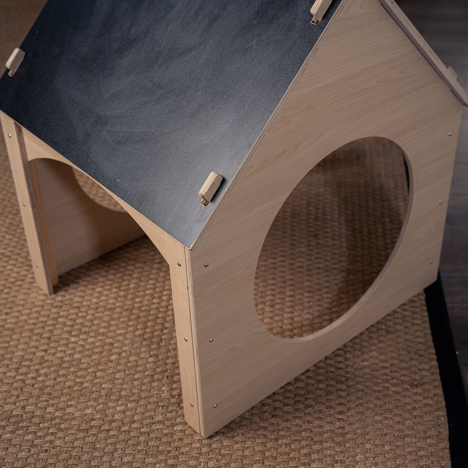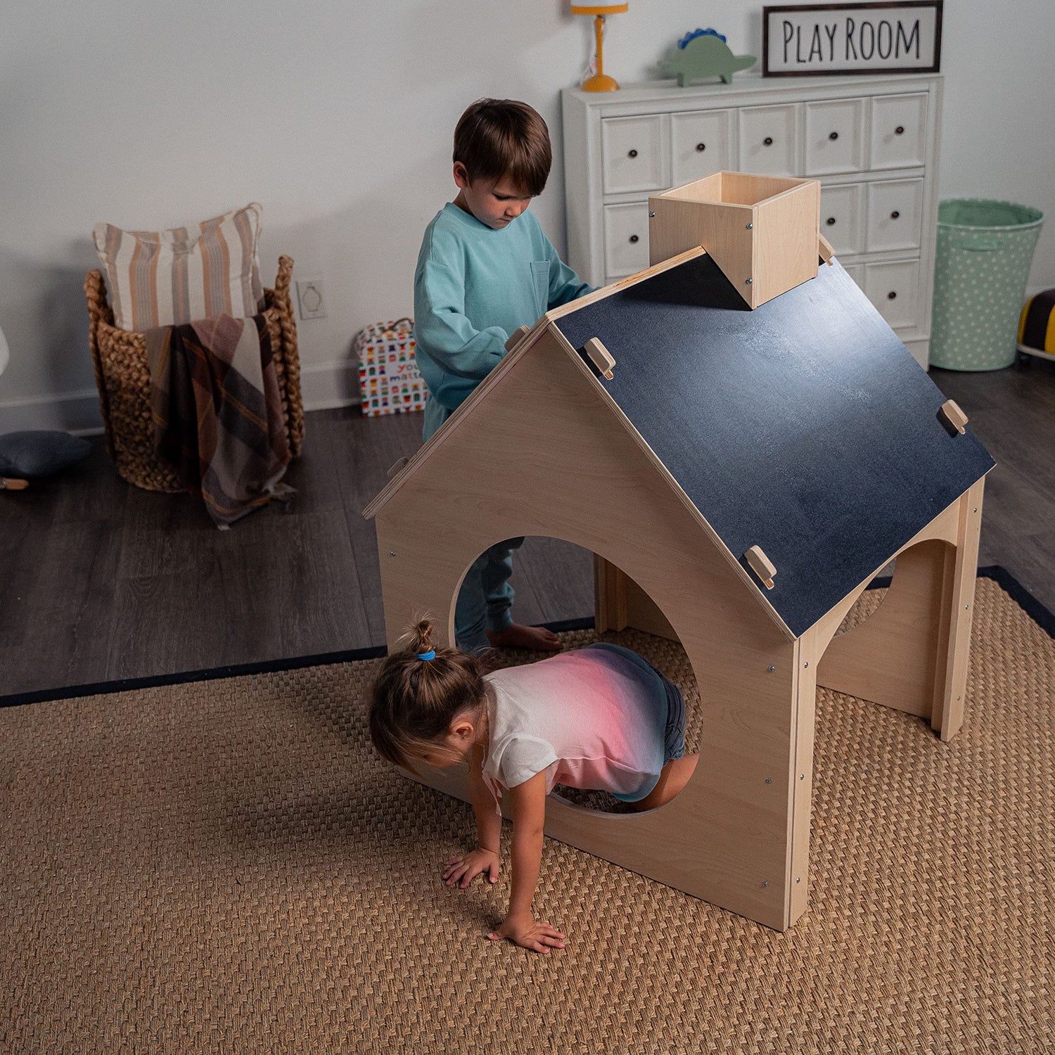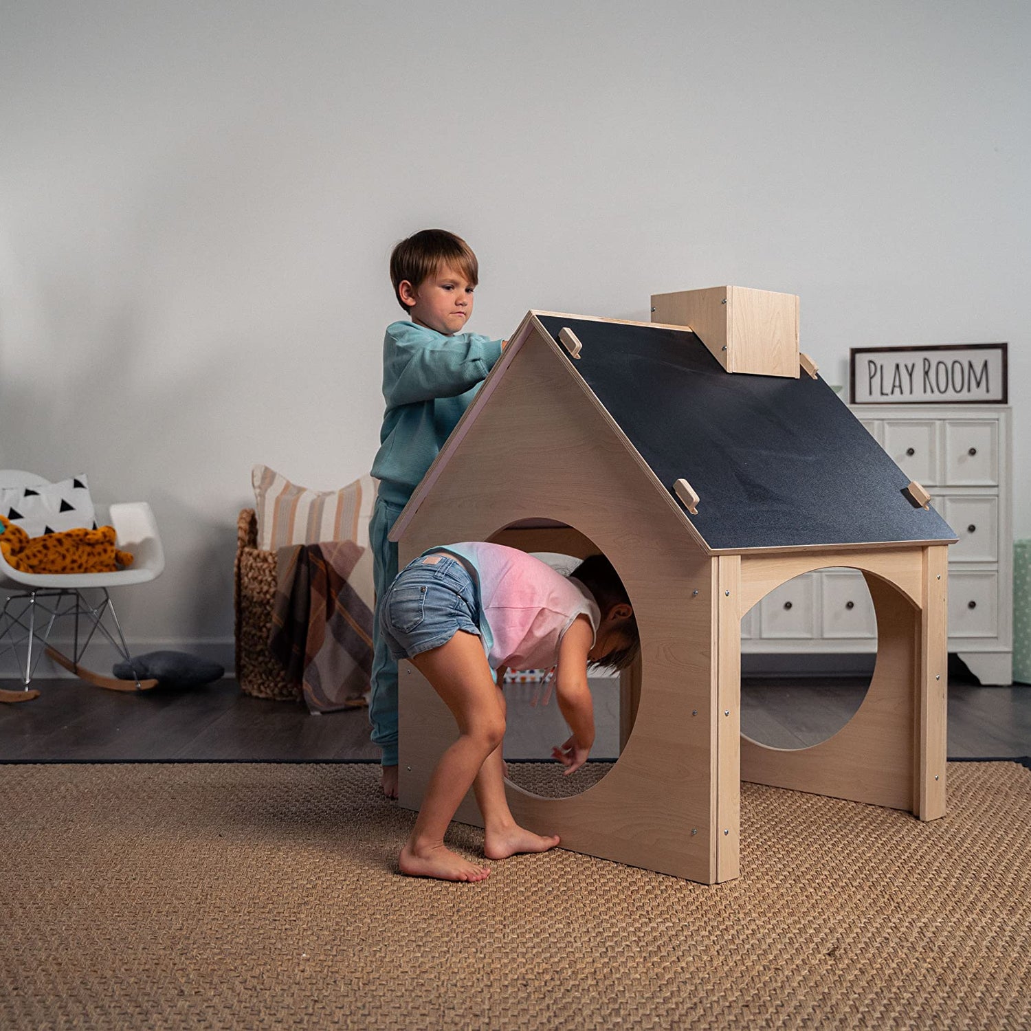 Avenlur Indoor Montessori Wooden and Waldorf Style Playhouse for Toddlers with Double Chalkboard Roof. Sturdy Play Set Structure for Children and Kids ECC Early Childhood Day Care, Preschool Playroom