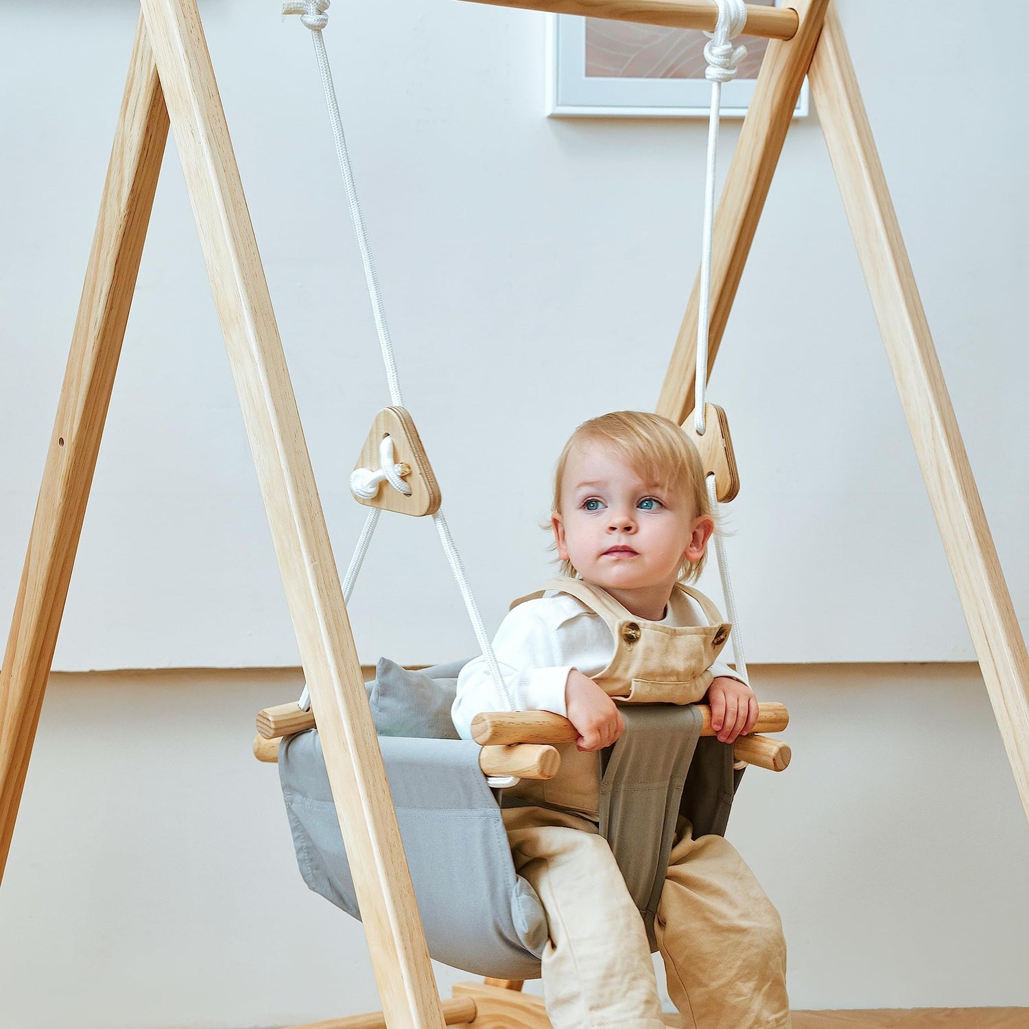 Avenlur Spruce Baby and Toddler Foldable Swing Set with Stand - Premium Montessori, Waldorf Style Self-Standing Indoor Swingset for Children 6m to 3 Yrs - Perfect for Home, Child Day Care, & Preschool