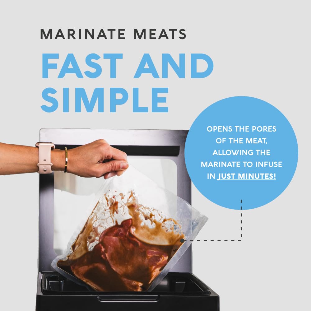 • Marinating Made Easy - Unlike regular vacuum sealers for food, our kitchen sealing machine lets you marinate food items in the vacuum chamber. Place your meat in vacuum packers for food to open up its surface and soak it in the marinade for minutes.