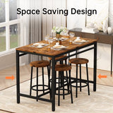AWQM Industrial Counter Height Bar Table Set with 4 Stools - Rustic Brown & Black Dining Solution